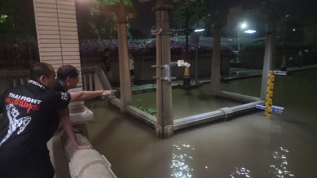 เมื่อเวลา 19.00 น. วันที่ 9 พฤศจิกายน 2568 ที่ อาคารอเนกประสงค์ สำนักงานองค์การบริหารส่วนจังหวัดปทุมธานี (ข้างแพขาว องค์การบริหารส่วนจังหวัดปทุมธานี (อบจ.ปทุมธานี) ตำบลบางปรอก อำเภอเมืองปทุมธานี จังหวัดปทุมธานี พล.ต.ท.คำรณวิทย์ ธูปกระจ่าง นายก อบจ.ปทุมธานี พร้อมด้วย นายนพพร ขาวขำ รองนายก อบจ.ปทุมธานี ร้อยตำรวจเอก ดร.ตรีลุพธ์ ธูปกระจ่าง นายกเทศมนตรีนครรังสิต นายจิรายุ ใจเอื้อเฟื้อ สมาชิกสภา อบจ.เขตเลือกตั้งที่ 2 อ.เมืองปทุมธานี นายนพนันท์ คุณาวิชชา สมาชิกสภา อบจ.เขตเลือกตั้งที่ 3 อ.เมืองปทุมธานี นายอดิสร อยู่นาน สมาชิกสภา อบจ.เขตเลือกตั้งที่ 5 อ.เมืองปทุมธานี ร่วมลงพื้นที่ติดตามระดับน้ำในแม่น้ำเจ้าพระยา หลังทาง ปภ.ส่ง sms แจ้งเตือนพื้นที่เฝ้าระวังทำให้มีประชาชนจำนวนมากที่หวาดกลัว และวิตกกังวลต่างเดินทาง มาดูมาตราวัดระดับน้ำที่สวนเทพปทุม เป็นจำนวนมากโดยที่มีอาคารแพขาว ซึ่งเป็นอาคารเก่าแก่ สันนิษฐานว่าสร้างเมื่อปี พ.ศ. 2460 เมื่อมีการย้ายส่วนราชการจังหวัดจากบ้านโคกชะพลูมาอยู่บริเวณริมแม่น้ำเจ้าพระยาฝั่งตะวันตก เดิมเป็นจวนข้าหลวงที่ใช้รับรองแขกลักษณะตัวอาคารเป็นเรือนไม้ทรงสี่เหลี่ยม ทาสีขาว มีชานระเบียงโล่งโปร่งรับลม หันออกสู่แม่น้ำเจ้าพระยา ในอดีตเรือนแพขาวแห่งนี้เคยรับรองบุคคลสำคัญ อาทิ พระบาทสมเด็จพระเจ้าอยู่หัวอานันทมหิดล รัชกาลที่ 8 และพระอนุชา พระบาทสมเด็จพระเจ้าอยู่หัวภูมิพลอดุลยเดช รัชกาลที่ 9 เมื่อครั้งเสด็จพระราชดำเนินทรงเยี่ยมทุกข์สุขราษฎรจังหวัดนนทบุรี และปทุมธานี วันที่ 8 พฤษภาคม 2489 โดยประทับ ณ เรือนแพขาว ทอดพระเนตรการแข่งขันเรือพาย ต่อมาคือ สมเด็จพระเทพรัตนราชสุดาฯ สยามบรมราชกุมารี เสด็จพระราชดำเนิน ทอดพระเนตรทัศนียภาพลำน้ำเจ้าพระยาบริเวณหน้าเรือนแพขาว เมื่อวันที่ 30 พฤษภาคม 2541 ภายในอาคารเรือนแพขาวมีห้องต่าง ๆ และมีห้องซึ่งเป็นที่ประดิษฐานพระบรมรูปพระบาทสมเด็จพระจุลจอมเกล้าเจ้าอยู่หัว รัชกาลที่ 5 เพื่อให้ประชาชนสักการะ อาจจะได้รับผลกระทบถ้าระดับความสูงขึ้นอีก