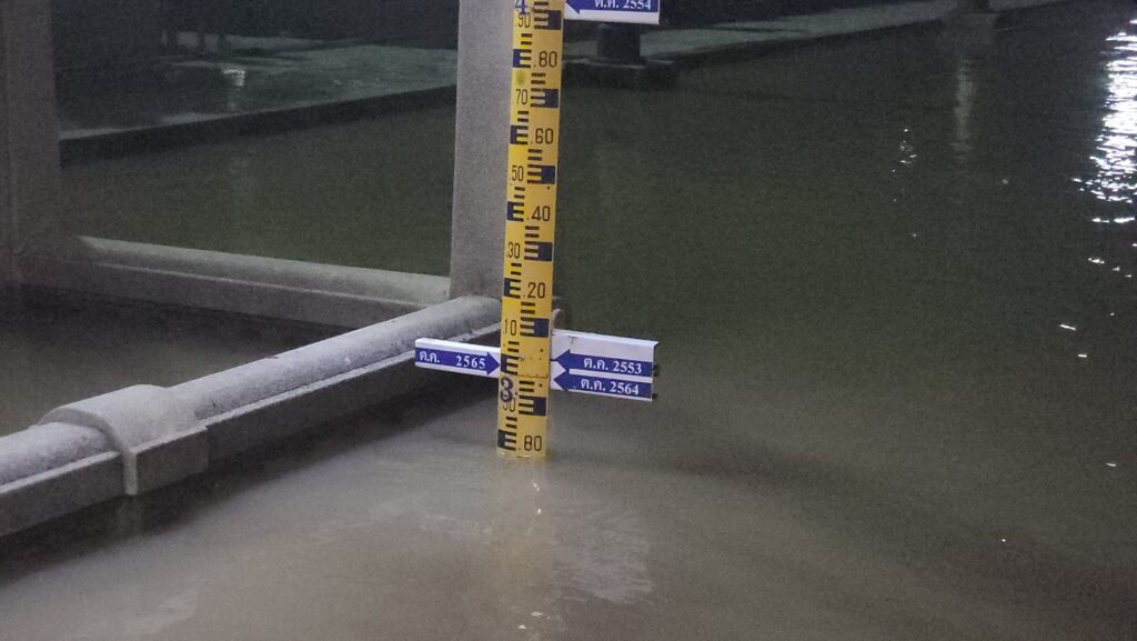 ด้าน ร้อยตำรวจเอก ดร.ตรีลุพธ์ ธูปกระจ่าง นายกเทศมนตรีนครรังสิต กล่าวว่า ในเรื่องของ sms เตือนภัย อยากขอให้ประชาชนทำความเข้าใจ อย่าตื่นตกใจ เพราะ สถานการณ์จะกระทบอยู่กับประชาชนที่อาศัยริมแม่น้ำเจ้าพระยา ก็จะมีข้อความที่ระบุไว้ว่าริมแม่น้ำอันนี้จะเกิดผลกระทบ เราเต้องเตรียมความพร้อมให้ดี และฟังจากการประชาสัมพันธ์ให้ดี ส่วนพื้นที่อื่นๆ และรังสิตยังไม่ต้องวิตกกังวล และเราจะมีการประชาสัมพันธ์ให้ทราบเป็นระยะๆถ้าจะอธิบายให้ประชาชนเข้าใจง่าย ๆคือให้ประชาชนคิดเอาไว้เลยว่าระดับน้ำจะสูงเท่ากับประมาณปี 2565 เป็นเกณต์ บ้านไหนที่ได้รับผลกระทบ บ้านนั้นก็ต้องเตรียมความพร้อมเอาไว้ ส่วนบ้านไหนไม่ได้รับผลกระทบจากน้ำปี 2565 ก็รอฟังการประชาสัมพันธ์ ว่าระดับน้ำจะมากเกินปี 2565 หรือเปล่า