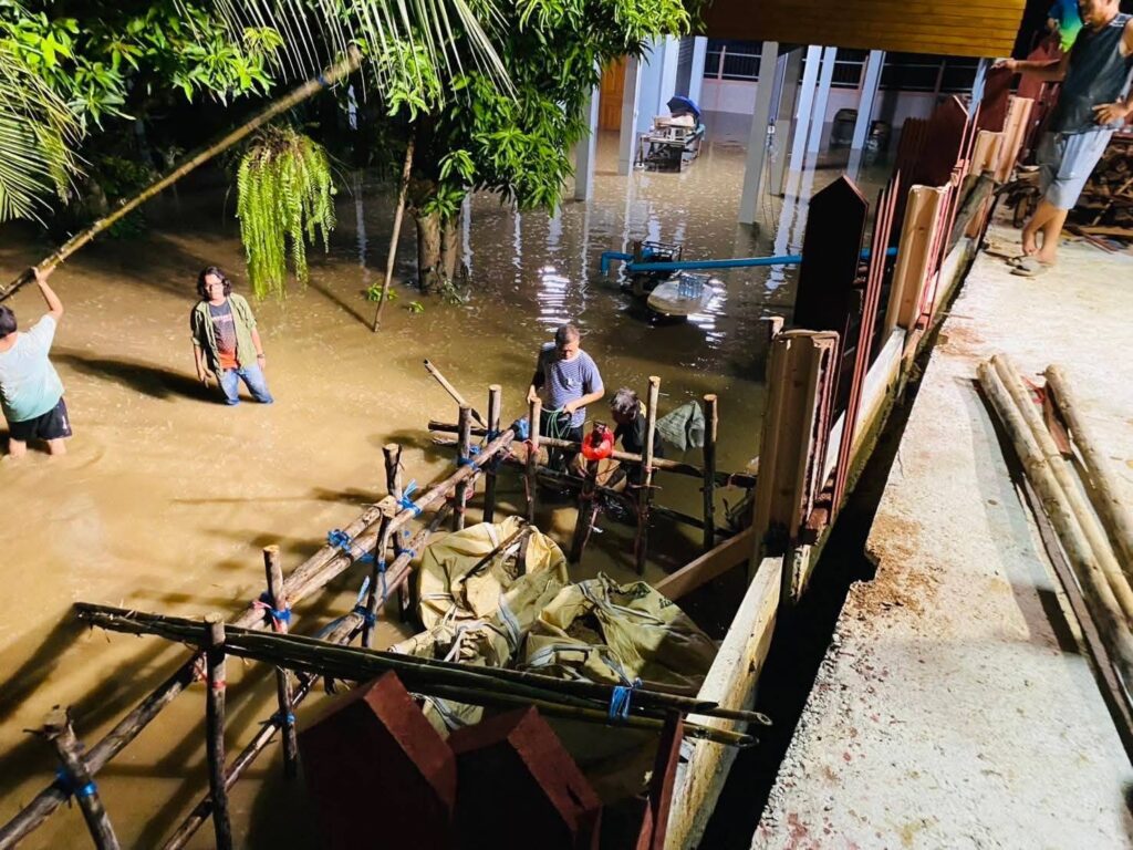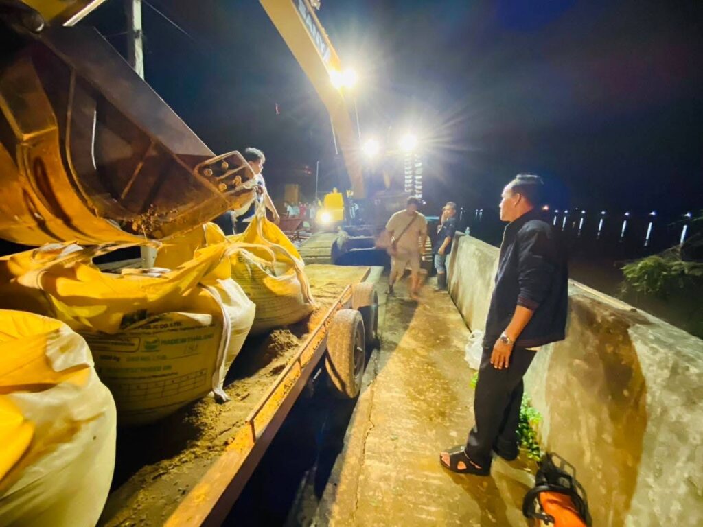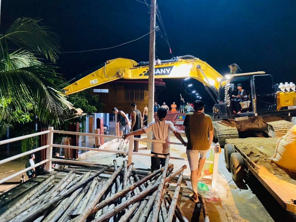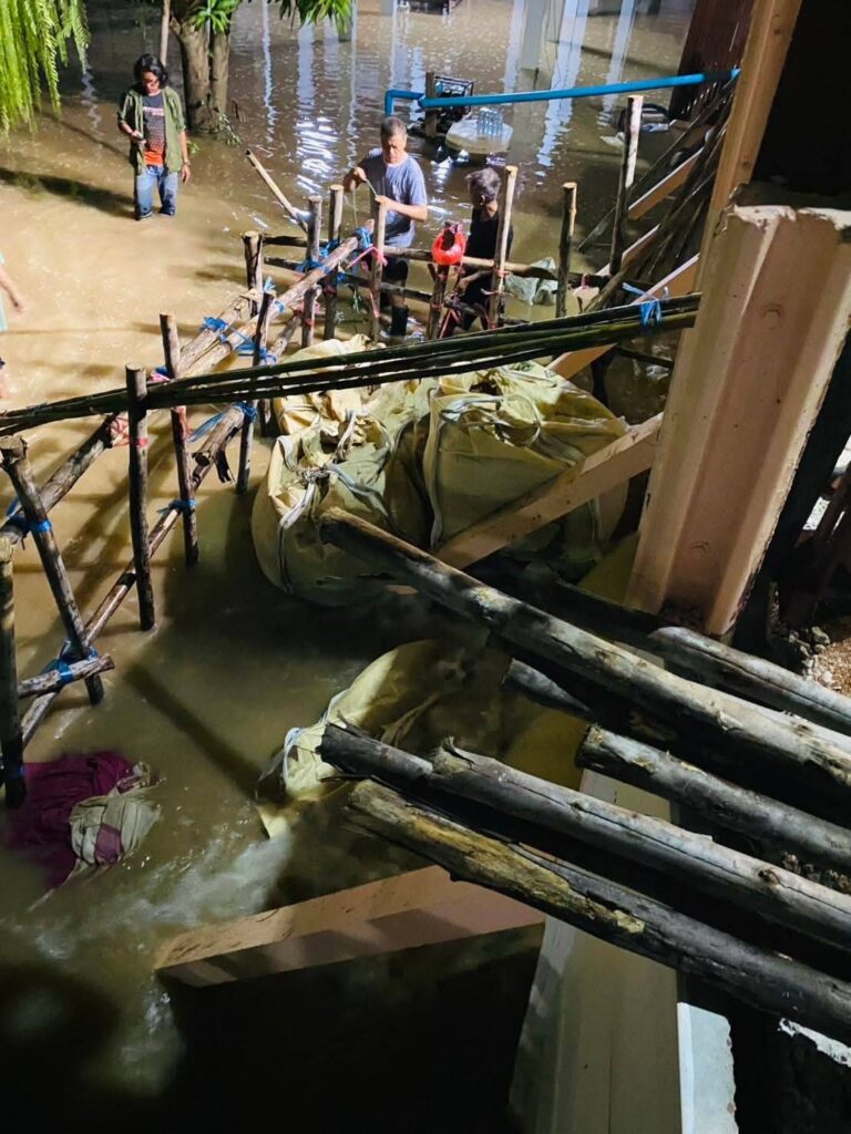 อบจ. สห.หัวหน้าสำนักงาน ปภ.จ.สิงห์บุรี จนท.ไฟฟ้า อำเภอพรหมบุรี นายกอบต.พระงามกำนันผู้ใหญ่บ้านในพื้นที่ และอบต.พระงามกำลังดำเนินการวาง big bag เพื่อเป็นการชะลอน้ำที่จะไหลเข้าท่วมบ้านเรือนประชาชน