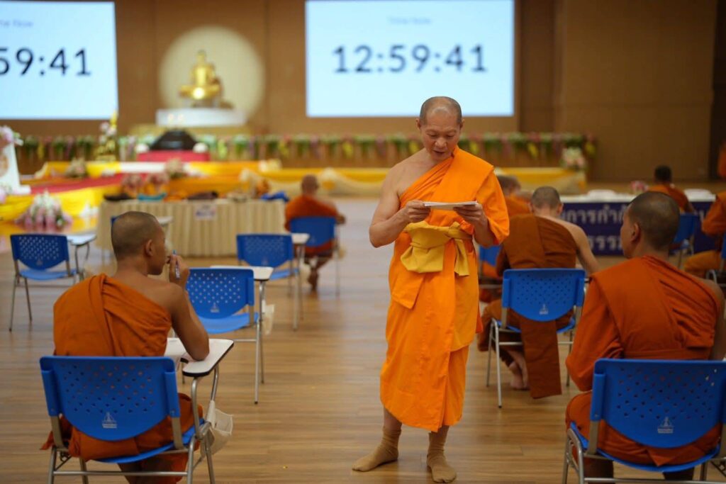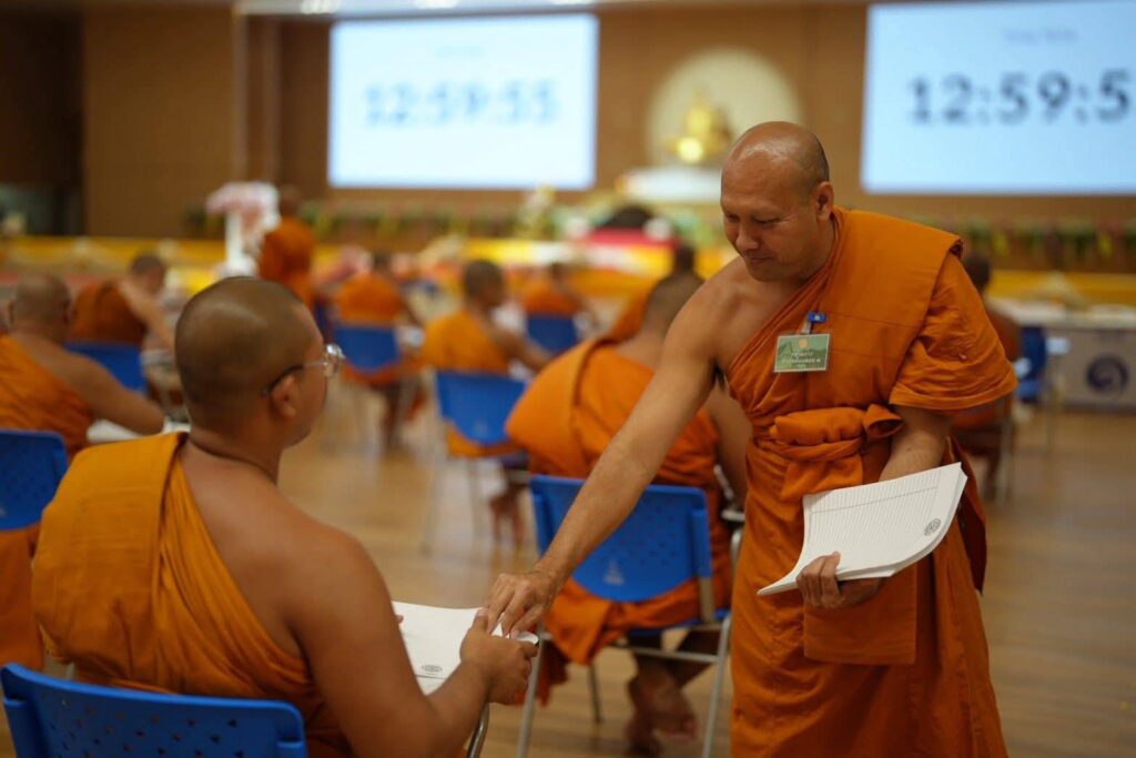 ในการนี้ พระครูปลัดรัตนวีรวัฒน์ (รังสฤษดิ์ อิทฺธิจินฺตโก) เจ้าอาวาสวัดพระธรรมกาย รองประธานกรรมการสนามสอบ ได้ถวายการปฏิสันถาร นำตรวจเยี่ยมและถวายรายงานผลการดำเนินงาน พร้อมทั้งให้การต้อนรับและอนุโมทนาแก่เจ้าภาพผู้มีจิตศรัทธาที่มาถวายน้ำปานะแด่พระภิกษุ–สามเณรผู้เข้าสอบ