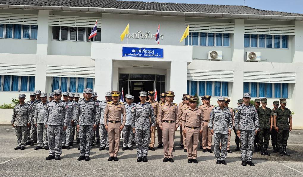 วันนี้ 11 พ.ย.2567 พลเรือโท วีรุดม ม่วงจีน ผู้บัญชาการทัพเรือภาคที่ ๓ และในฐานะผู้อำนวยการศูนย์อำนวยการรักษาผลประโยชน์ของชาติทางทะเลภาค ๓ พร้อมด้วย พลเรือตรี บรรณวิตร์ เฉลิมทอง รองผู้อำนวยการ ศรชล.ภาค ๓ และคณะ ในโอกาสเดินทางมาตรวจเยี่ยมและมอบนโยบายให้กับกำลังพล รวมทั้งรับทราบปัญหาอุปสรรคข้อขัดข้องในการปฏิบัติงานที่ผ่านมาของหน่วยงานใน ศรชล.ภาค ๓ พื้นที่จังหวัดสตูลโดยมีน.อ.รัฐพล แก้วกระจาย ร.น. หัวหน้าศูนย์ควบคุมความมั่นคงท่าเรือจังหวัดสตูล พร้อมศูนย์อำนวยการรักษาผลประโยชน์ของชาติทางทะเลจังหวัดสตูล,นาวาโท คงฤทธิ์ บุญทอง ผู้บังคับหน่วยปฏิบัติการต่อสู้อากาศยานและรักษาฝังที่ 452,นาวาตรีปรัชญ์ ขำเจริญ หัวหน้าสถานีเรือละงู/รองผู้บังคับหน่วยรักษาความปลอดภัยทางทะเลเกาะหลีเป๊ะ,เรือ ต.273 ,เรือ ต.994ที่ออกปฏิบัติราชการในพื้นที่ทะเลฝั่งอันดามัน,พร้อมด้วยหัวหน้าส่วนราชการหน่วยงานใน ศรชล.จว.สตูล และหน่วยงานที่เกี่ยวข้องร่วมให้การต้อนรับ