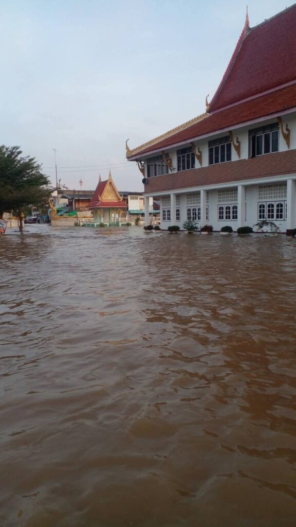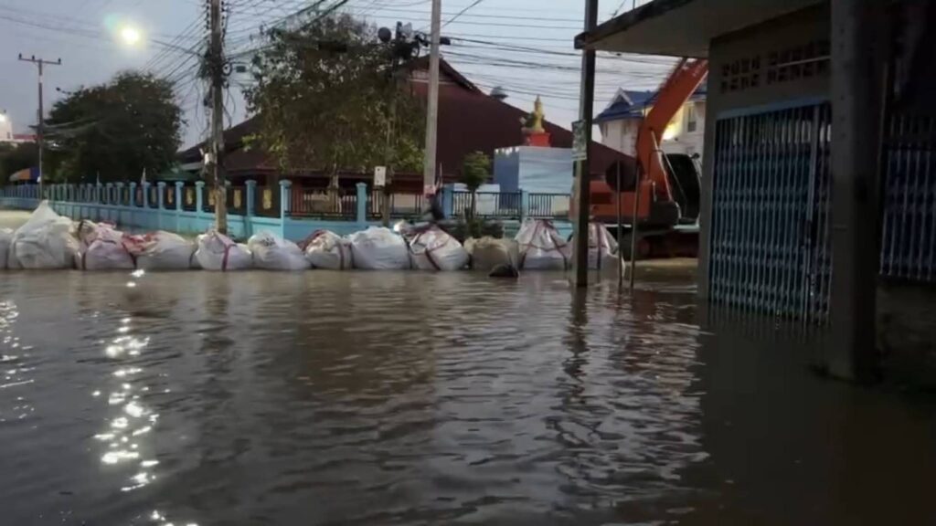 วันที่ 12 พ.ย 68 เวลาประมาณ 16.30 น. เกิดเหตุแนวคันกระสอบทรายปิดกั้นพื้นที่ หมู่ 4 วัดปราสาท ตำบลอินทร์บุรี น้ำทะลักเข้าท่วมบ้านเรือนบริเวณ ม.4 วัดปราสาท ต.อินทร์บุรี อำเภออินทร์บุรี อย่างรวดเร็ว ทำให้บ้านเรือนประชาชนได้รับผลกระทบ ประมาณ 300 ครัวเรือนได้รับผลกระทบ เจ้าหน้าที่การไฟฟ้าอินทร์บุรีตัดกระแสไฟฟ้าและเจ้าหน้าที่กู้ภัยช่วยอพยพคนออกนอกพื้นที่อย่างต่อเนื่อง มวลน้ำกำลังไหลต่อไปยัง ม.3 และ ม.2 ซึ่งมีสถานที่ราชการสำคัญ เช่น สถานีตำรวจภูธรอำเภออินทร์บุรี , ที่ว่าการอำเภออินทร์บุรี และสาธารณสุขอินทร์บุรี