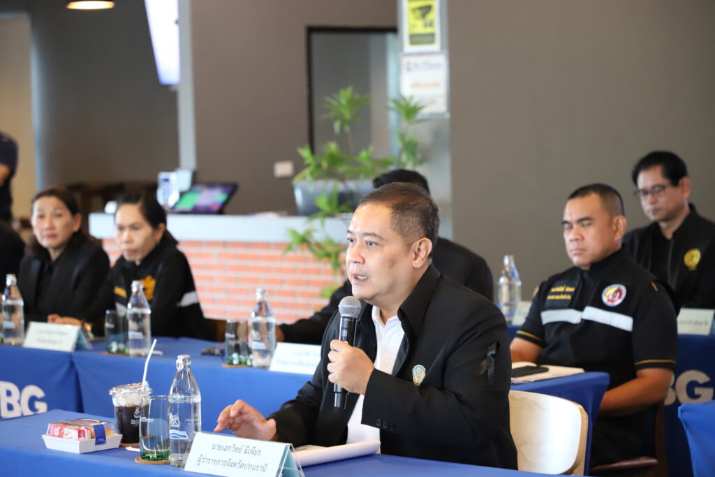 วันนี้ (15 พ.ย.68) เวลา 10.00 น. นายเอกวิทย์ มีเพียร ผู้ว่าราชการจังหวัดปทุมธานี ลงพื้นที่อำเภอธัญบุรี มอบนโยบาย พร้อมพบปะ รับฟังความคิดเห็นหารือแนวทางการพัฒนาจังหวัดปทุมธานี พร้อมด้วย พ.อ.กิตติศักดิ์ วัฒนเดช รอง ผอ.รมน.จังหวัด ปทุมธานี นายดงพล รุจิธรรมธัช ปลัดจังหวัดปทุมธานี นางสาววัชรินทร์ มิ่งขวัญรุ่งเรือง หัวหน้าสำนักงานจังหวัดปทุมธานี และหัวหน้าส่วนราชการ หน่วยงานที่เกี่ยวข้องเข้าร่วมลงพื้นที่อำเภอธัญบุรี โดยได้เข้านมัสการพระธรรมรัตนาภรณ์ ที่ปรึกษาเจ้าคณะภาค 1 เจ้าอาวาสวัดเขียนเขต พระอารามหลวง และเข้าเยี่ยมชมสนามทรูบีจี สเตเดี้ยม แล้วในช่วงบ่ายได้เยี่ยมชมศูนย์การแพทย์และฟื้นฟูบึงยี่โถ ตำบลบึงยี่โถ อำเภอธัญบุรี จังหวัดปทุมธานี โดยมี ว่าที่ร้อยตรี ธีระพล โชคนำชัย นายอำเภอธัญบุรี นายวิศาล ลออเสถียรกุล ประธานเจ้าหน้าที่ฝ่ายกลยุทธ์องค์กร บริษัท บีจี คอนเทนเนอร์ กล๊าส จำกัด (มหาชน) นายรังสรรค์ นันทกาวงศ์ นายกเทศมนตรีเมืองบึงยี่โถ ร้อยตำรวจเอก ดร.ตรีลุพธ์ ธูปกระจ่าง นายกเทศมนตรีนครรังสิต