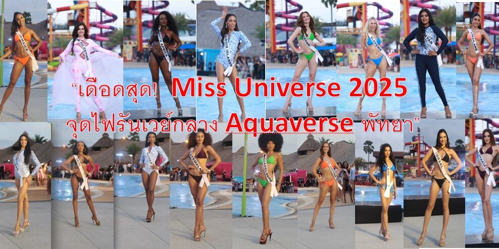 ครั้งแรกของโลก! มิสยูนิเวิร์ส 2025 จัดแฟชั่นโชว์ชุดว่ายน้ำสุดยิ่งใหญ่ ณ โคลัมเบีย พิคเจอร์ส อควาเวิร์ส พัทยา สาวงามกว่า 120 ประเทศระเบิดความปังบนรันเวย์สระคลื่นยักษ์ Mega Wave ความยาว 300 เมตร พร้อมมาลัยผ้า “Narada” ต้อนรับอย่างไทยสวยละมุน
