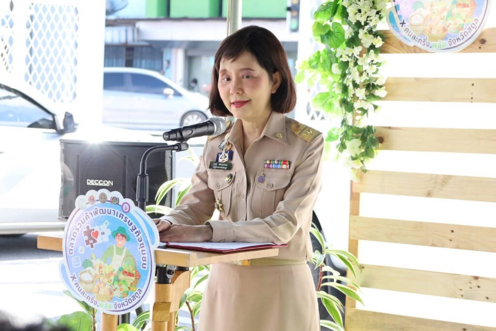 วันนี้ 17 พ.ย.68 ที่บริเวณหน้าอาคารเฉลิมพระเกียรติ 80 พรรษา ศาลากลางจังหวัดสตูล นางสาวดุษฎี พฤกษเศรษฐ รองผู้ว่าราชการจังหวัดสตูล เป็นประธานในพิธีเปิดงาน “ตลาดร่วมค้าพัฒนาเศรษฐกิจชุมชน X คนละครึ่ง พลัส จังหวัดสตูล” ซึ่งจัดขึ้นเพื่อสนับสนุนผู้ประกอบการท้องถิ่น และขับเคลื่อนมาตรการกระตุ้นเศรษฐกิจตามนโยบายรัฐบาล โดยเฉพาะโครงการ คนละครึ่ง พลัส ที่มุ่งเพิ่มกำลังซื้อและสร้างรายได้ให้กับประชาชนและชุมชน จังหวัดสตูลได้เดินหน้านโยบายด้านเศรษฐกิจอย่างต่อเนื่อง ทั้งการส่งเสริมการจำหน่ายสินค้าผ่านพื้นที่ตลาดต่างจังหวัด ห้างสรรพสินค้า ตลอดจนช่องทางออนไลน์ ขณะเดียวกัน รัฐบาลได้ดำเนินมาตรการกระตุ้นเศรษฐกิจเพื่อแก้ไขภาวะซบเซา หนึ่งในนั้นคือโครงการคนละครึ่ง พลัส ที่ช่วยลดภาระค่าครองชีพและเพิ่มโอกาสทางการตลาดให้กับผู้ประกอบการรายย่อย งาน “ตลาดร่วมค้าพัฒนาเศรษฐกิจชุมชน X คนละครึ่ง พลัส จังหวัดสตูล” เกิดจากความร่วมมือระหว่างหน่วยงานด้านเศรษฐกิจของจังหวัด ที่มุ่งส่งเสริมช่องทางการตลาดให้ผู้ประกอบการสามารถกระจายสินค้าได้กว้างขึ้น สร้างรายได้เพิ่ม และเสริมสร้างความเข้มแข็งให้ระบบเศรษฐกิจชุมชน โดยมีวัตถุประสงค์เพื่อช่วยเหลือผู้ประกอบการสินค้าเกษตรและชุมชนที่ได้รับผลกระทบจากสภาพเศรษฐกิจและภาวะค่าครองชีพสูง ให้มีช่องทางจำหน่ายเพิ่มขึ้น พร้อมทั้งเชื่อมโยงตลาดทั้งในพื้นที่และนอกพื้นที่