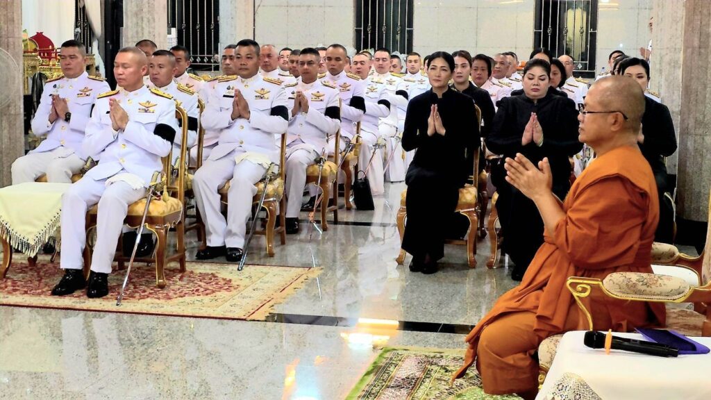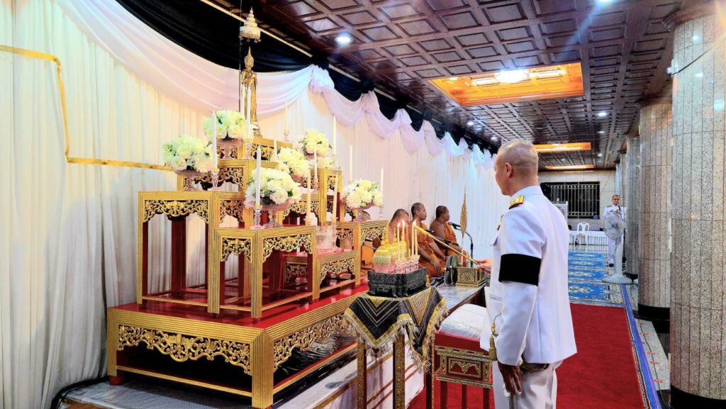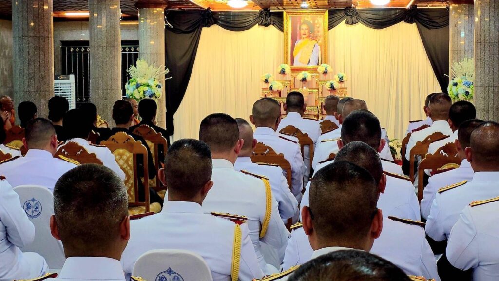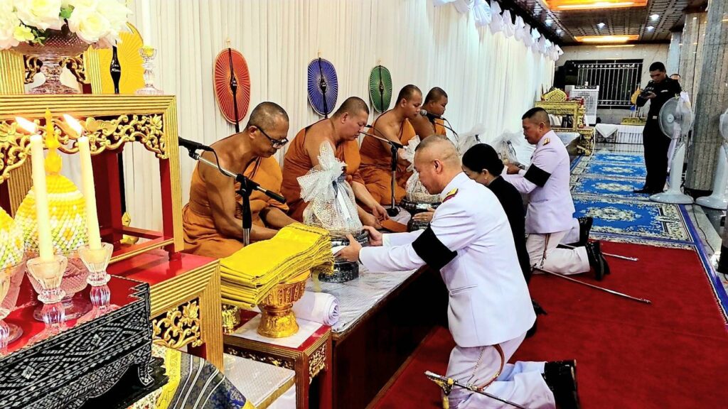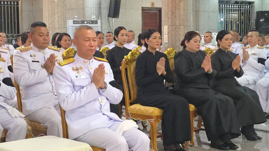 พลตรี สมศักดิ์ นุตพันธุ์ ผู้บัญชาการศูนย์การทหารปืนใหญ่ ในฐานะประธานในพิธี ได้จุดรูปเทียนบูชาพระรัตนตรัย จุดธูปเทียนที่เครื่องนมัสการกระบะมุก หน้าตู้พระธรรม และจุดธูปเทียนที่เครื่องทองน้อยเบื้องหน้าพระฉายาลักษณ์สมเด็จพระนางเจ้าสิริกิติ์ พระบรมราชินีนาถ พระบรมราชชนนีพันปีหลวง จากนั้น คณะสงฆ์ได้สวดพระอภิธรรมทำนองหลวง เพื่ออุทิศถวายเป็นพระราชกุศล ภายหลังการสวดพระอภิธรรมทำนองหลวง ประธานและคณะได้ร่วมถวายไทยธรรม พร้อมทอดผ้าไตรบังสุกลจำนวน 4 ผืน แด่พระสงฆ์ในการประกอบพิธีบังสุกุล หลังเสร็จสิ้นพิธีกรรมทางสงฆ์ ประธานกรวดน้ำ รับพร ก่อนกราบลาพระรัตนตรัย กราบลาพระสงฆ์และถวายความเคารพพระฉายาลักษณ์สมเด็จพระนางเจ้าสิริกิติ์พระบรมราชินีนาถ พระบรมราชชนนีพันปีหลวงเป็นอันเสร็จพิธี