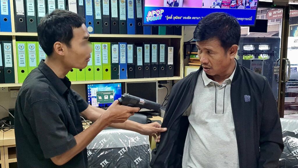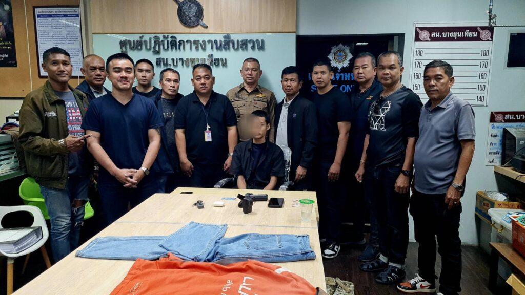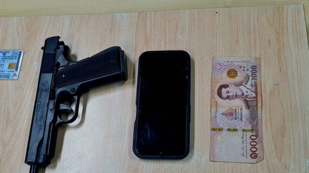 ผู้ต้องหาตามหมายจับศาลอาญาธนบุรีที่ 1100/2568 ลงวันที่ 17 พ.ย.68 ข้อหา “ชิงทรัพย์ในเวลากลางคืน โดยใช้ยานพาหนะฯ” พร้อมด้วยของกลาง เสื้อคลุมลาล่ามูฟ สีส้ม 1 ตัว กางเกงยีนส์ 2 ตัว สีคราม 1 สีดำ 1 ตัว, เสื้อคลุมแขนยาวสีดำ มีอักษรภาษาอังกฤษ NASA จำนวน 1 ตัว และหมวกกันน็อคเต็มใบ สีขาว 1 ใบ ชุดใช้ที่สวมใส่วันก่อเหตุ , สิ่งเทียมอาวุธปืนปลอมพลาสติก แม็กกาซีน สีดำ 1 กระบอก, รถ จยย. ยี่ห้อยามาฮ่า รุ่นแกรนด์ฟีลาโน่ สีน้ำเงิน ทะเบียน 9 ขจ 7727 กรุงเทพมหานคร 1 คันที่ใช้หลบหนี, โทรศัพท์มือถือ 1 เครื่องกระเป๋าสตางค์ ของผู้เสียหาย และเงินสด จำนวน 1,000 บาท โดยจับกุมได้ที่บริเวณหน้าตึก E สมาร์ทคอนโดพระรามที่ 2 ซอยบางขุนเทียน 16 แขวงแสมดำ เขตบางขุนเทียน กรุงเทพมหานคร
