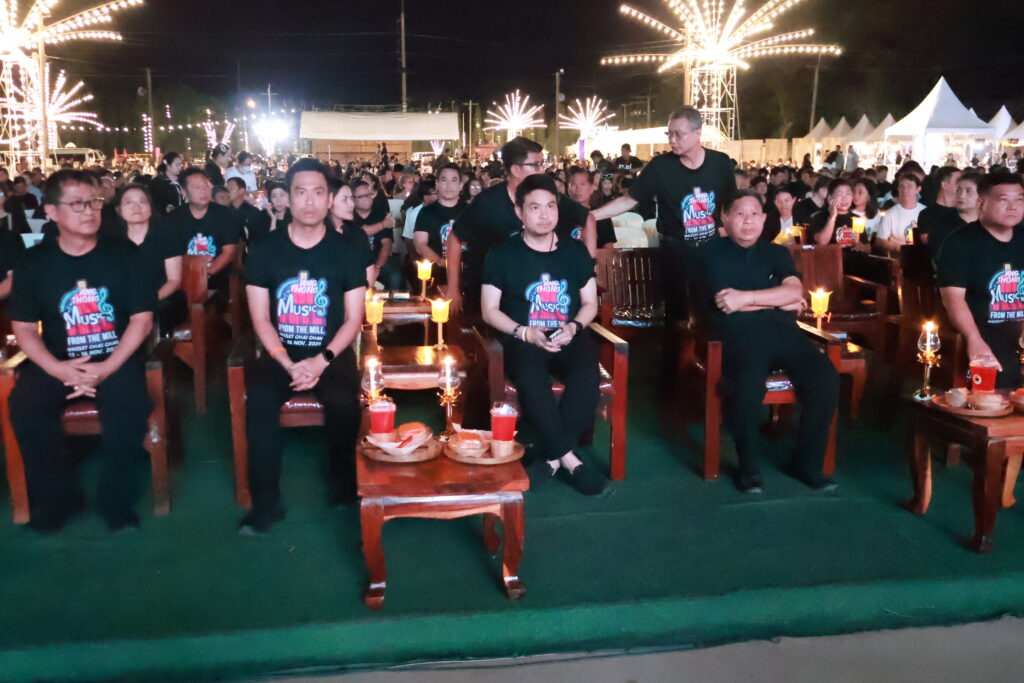 สำหรับงาน Angthong Music From The Mill @ Wiset Chai Chan จัดขึ้นระหว่างวันที่ 13-16 พฤศจิกายน 2568 ณ “โรงสีเก่า โรงสีวิเศษชัยชาญเจริญกิจ อำเภอวิเศษชัยชาญ” จังหวัดอ่างทอง ภายในงานพบกับกิจกรรมการแสดงคอนเสิร์ตจากศิลปินชื่อดังระดับประเทศ การประกวดวงดนตรีนักเรียน โซนอาหารและสินค้าของดีเมืองอ่างทอง โดยก่อนเริ่มกิจกรรมในวันนี้ นักท่องเที่ยวได้ร่วมจุดเทียน ยืนถวายความอาลัย สมเด็จพระนางเจ้าสิริกิติ์พระบรมราชินีนาถ พระบรมราชชนนีพันปีหลวง เป็นเวลา 93 วินาที ขณะเดียวกัน ผู้จัดงานยังได้แจกริบบิ้นสีดำ และขอความร่วมมือให้นักท่องเที่ยวได้แต่งกายโทนสีสุภาพ สอดคล้องกับห้วงแห่งการไว้อาลัยด้วย
