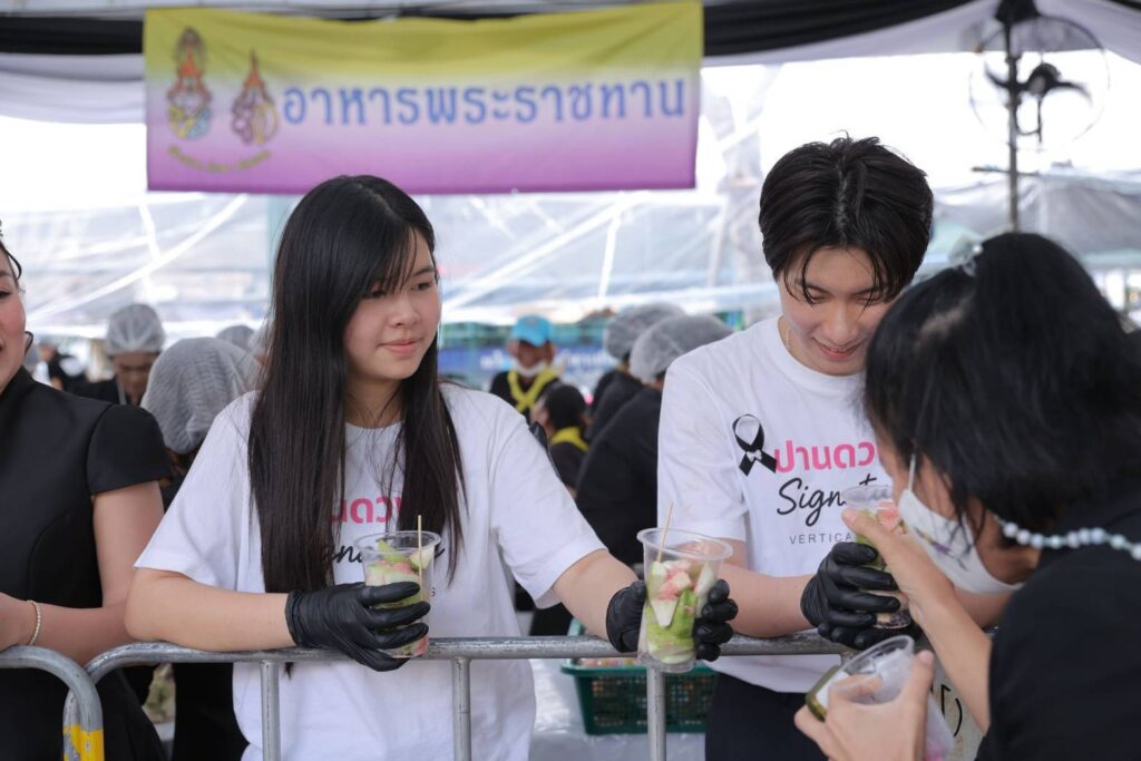 ร่วมด้วย 2 นักแสดงจากซีรัส์แนวตั้ง “ปานดวงใจSignature” ได้แก่ วายุ-วายุมันตรา และ คีธ-กรินทร์ ร่วมกันแจกอาหารพระราชทานให้กับประชาชนที่มาถวายความอาลัย #สมเด็จพระพันปีหลวง