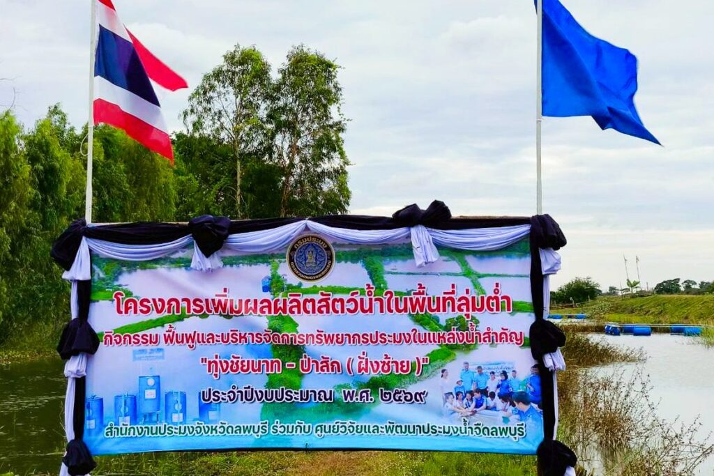 เมื่อวันที่ 18 พฤศจิกายน 2568 สำนักงานประมงจังหวัดลพบุรี จัดโครงการบริหารจัดการทรัพยากรประมง ในกิจกรรมฟื้นฟูและบริหารจัดการทรัพยากรประมงในแหล่งน้ำสำคัญ ประจำปีงบประมาณ 2569 โดยการปล่อยลูกพันธุ์ปลา จำนวน 15 ล้านตัว และปล่อยลูกพันธุ์ปลาขนาด 2-3 ซม. จำนวน 1 แสนตัว ลงในแหล่งน้ำธรรมชาติ ณ ทุ่งชัยนาท-ป่าสัก (ฝั่งซ้าย) มูลนิธิชัยพัฒนา “รวมกันสู้ อยู่อย่างพร้อม” ตำบลพุคา อำเภอบ้านหมี่ จังหวัดลพบุรี โดยมีนายสง่า คำพันธ์ ประมงจังหวัดลพบุรี พร้อมด้วย นายณภัทร เอมอ่อน นายอำเภอบ้านหมี่ ผู้นำท้องที่ ผู้นำท้องถิ่น กำนันผู้ใหญ่บ้าน กลุ่มผู้เพาะเลี้ยงสัตว์น้ำบ้านพุคา อาสาสมัครสาธารณสุขประจำหมู่บ้าน และประชาชนในพื้นที่เข้าร่วมปล่อยพันธุ์สัตว์น้ำ