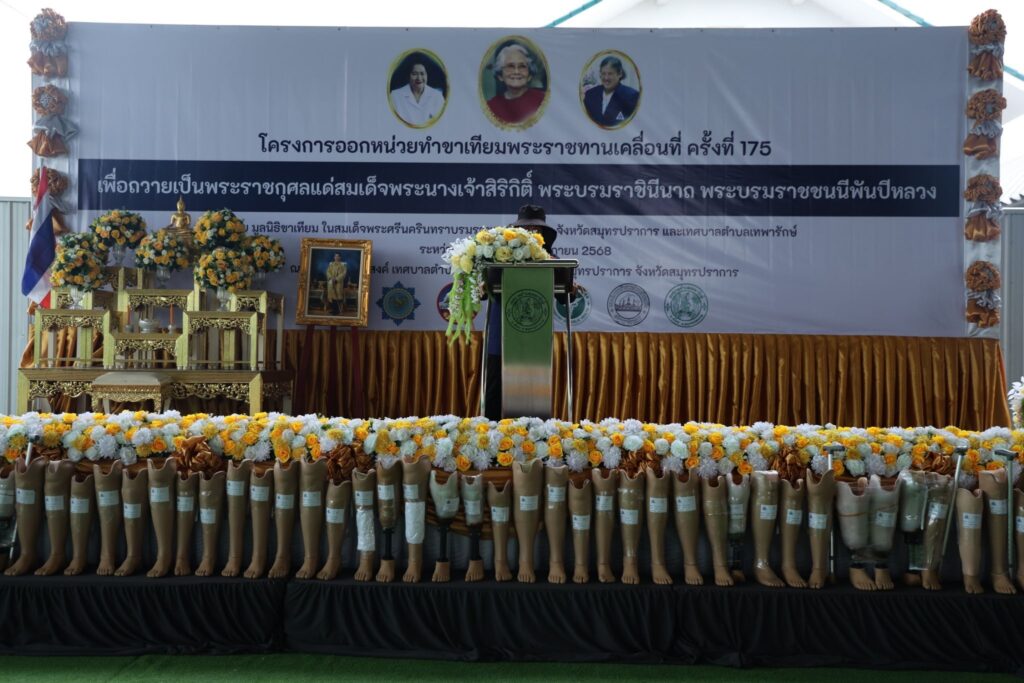 วันนี้ (วันศุกร์ที่ 21 พฤศจิกายน พ.ศ. 2568) มูลนิธิป่อเต็กตึ๊ง นำโดย นายวิชิต ชินวงศ์วรกุล รองประธานกรรมการ พร้อมด้วย นางศิริกุล โอภาสวงศ์ กรรมการและเลขาธิการ นายชาญกิจ วิทยาวรากรณ์ กรรมการ นายชูเดช เตชะไพบูลย์ ผู้ช่วยกรรมการ และนางสาวดวงชุตา ติยะพจนพรกุล ผู้ช่วยผู้จัดการฝ่ายสังคมสงเคราะห์ นำทีมแผนกส่งเสริมการศึกษาและอาชีพ ลงพื้นที่ มอบค่าพาหนะ พร้อมด้วยเครื่องอุปโภคบริโภค ประกอบด้วย เส้นหมี่ขาว วุ้นเส้น น้ำมันพืช ขนมเบ็ดเตล็ด รองเท้าฟองน้ำ บรรจุถุงผ้าดิบมูลนิธิฯ ให้แก่ผู้รับขาเทียม และช่างอาสาสมัคร ที่เข้าร่วมโครงการออกหน่วยทำขาเทียมพระราชทานเคลื่อนที่ ครั้งที่ 175 รวมจำนวน 175 คน รวมงบประมาณเป็นเงินทั้งสิ้น 158,928.75 บาท พร้อมมอบรถโดยสารขนาดเล็ก (Mini Bus) มูลค่า 2,950,000 บาท แก่มูลนิธิขาเทียม ในสมเด็จพระศรีนครินทราบรมราชชนนี เพื่อถวายเป็นพระราชกุศลแด่สมเด็จพระนางเจ้าสิริกิติ์ พระบรมราชินีนาถ พระบรมราชชนนีพันปีหลวง รวมงบประมาณดำเนินการในครั้งนี้ทั้งสิ้น 3,108,928.75 บาท (สามล้านหนึ่งแสนแปดพันเก้าร้อยยี่สิบแปดบาทเจ็ดสิบห้าสตางค์) โดยมี ศาสตราจารย์เกียรติคุณ นายแพทย์เกษม วัฒนชัย องคมนตรี และประธานกรรมการมูลนิธิขาเทียม ในสมเด็จพระศรีนครินทราบรมราชชนนี เป็นประธานในพิธี ณ โดมอเนกประสงค์ สำนักงานเทศบาลตำบลเทพารักษ์ อำเภอเมือง จังหวัดสมุทรปราการ