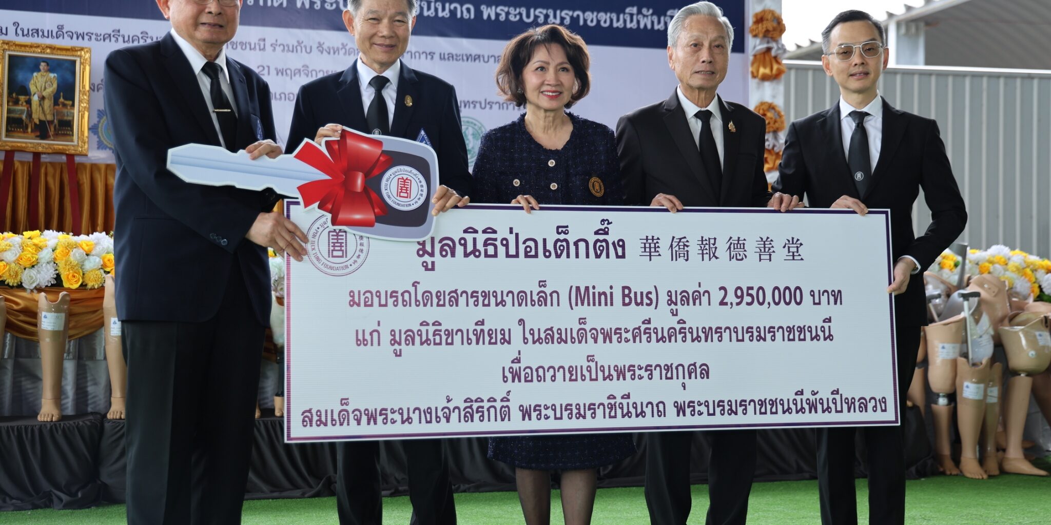 มูลนิธิป่อเต็กตึ๊ง มอบรถ Mini Bus สนับสนุนภารกิจมูลนิธิขาเทียม ในสมเด็จพระศรีนครินทราบรมราชชนนี เพื่อถวายเป็นพระราชกุศล สมเด็จพระนางเจ้าสิริกิติ์ พระบรมราชินีนาถ พระบรมราชชนนีพันปีหลวง พร้อมมอบค่าพาหนะ เครื่องอุปโภคบริโภคแก่ผู้รับขาเทียม และช่างอาสาสมัคร ในโครงการออกหน่วยฯ ครั้งที่ 175 รวมงบฯ กว่า 3.1 ล้านบาท