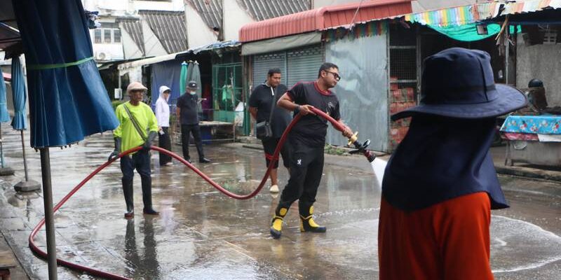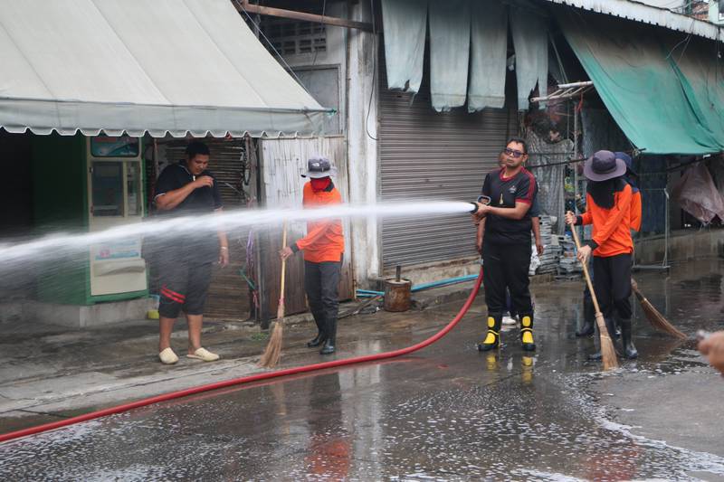 นำกำลังเจ้าหน้าที่กองสาธารณสุขและสิ่งแวดล้อมเทศบาลเมืองลพบุรี เจ้าหน้าที่งานป้องกันและบรรเทาสาธารณภัยเทศบาลเมืองลพบุร