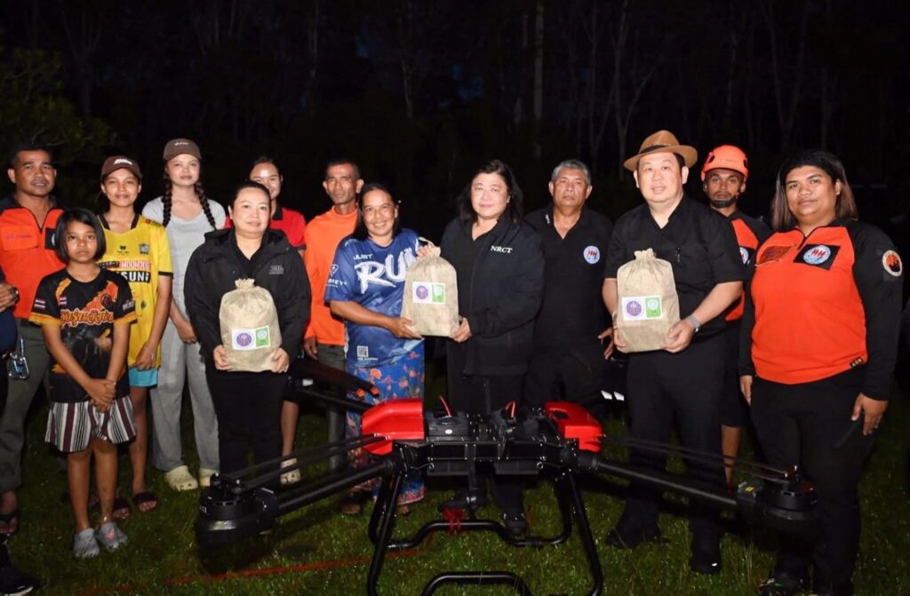การลงพื้นที่ในครั้งนี้ เป็นการติดตามการปฏิบัติงานของ“ศูนย์ศึกษาและพัฒนาระบบการใช้โดรนเพื่อสนับสนุนเมื่อเกิดภัยพิบัติ” ที่ (วช.) ร่วมกับ สมาคมกีฬาเครื่องบินจำลองและวิทยุบังคับ จัดตั้งขึ้น ณ ศูนย์เครือข่ายเตือนภัยพิบัติชุมชนเพื่อนพึ่ง (ภาฯ) ตำบลเกาะขันธ์ จังหวัดนครศรีธรรมราช และ ศูนย์การจัดการภัยพิบัติ เพื่อนพึ่ง (ภาฯ) ลุ่มน้ำทะเลสาบสงขลาตอนบน ต.บ้านขาว อ.ระโนด จ.สงขลา โดยมี จ่าโทโกเมศร์ ทองบุญชู ประธานเครือข่ายการจัดการภัยพิบัติจากธรรมชาติ จ.นครศรีธรรมราช นำเสนอเหตุการณ์อุทกภัยใน จ.นครศรีธรรมราช และ จ.สงขลา พร้อมการปฏิบัติการในการนำนวัตกรรมโดรนที่ (วช.) ให้การสนับสนุนไปช่วยเหลือพี่น้องประชาชนในพื้นที่ประสบอุทกภัยในภาคใต้