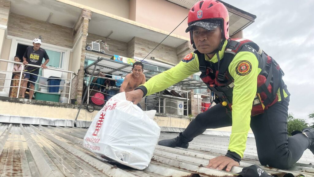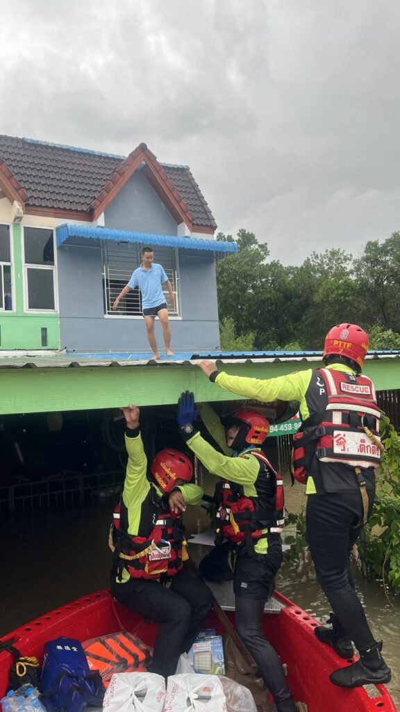ตามที่ได้เกิดฝนตกหนักต่อเนื่องในพื้นที่จังหวัดสงขลา ส่งผลให้เกิดอุทกภัยขึ้นในพื้นที่ ประชาชนได้รับความเดือดร้อน และเสียหายเป็นจำนวนมาก โดยเฉพาะอย่างยิ่งในพื้นที่อำเภอหาดใหญ่ มูลนิธิป่อเต็กตึ๊ง โดย นายวิเชียร เตชะไพบูลย์ ประธานกรรมการ มอบหมายให้นายอรัณย์ โตทวด ผู้จัดการใหญ่มูลนิธิฯ เร่งกระจายทีมบูรณาการช่วยเหลือผู้ประสบภัยน้ำท่วม โดยวันเสาร์ที่ 22 พฤศจิกายน พ.ศ.2568 ได้เร่งจัดทีมบรรเทาสาธารณภัย นำโดย นายวรพจน์ จรัสเศรษฐสิริ ผู้ช่วยผู้จัดการฝ่ายปฏิบัติการฯ นำทีมกู้ภัย กู้ชีพ อาสาสมัคร พร้อมรถโรงครัวเคลื่อนที่ 2 คัน เรือท้องแบน 2 ลำ อุปกรณ์กู้ภัยทางน้ำ เครื่องกำเนิดไฟฟ้า รถกู้ภัยและรถพยาบาลขับเคลื่อน 4 ล้อ เสื้อชูชีพ น้ำดื่ม ชุดยาสามัญประจำบ้าน อาหารสุนัขและแมว เร่งลงพื้นที่อำเภอหาดใหญ่ จังหวัดสงขลา ให้ความช่วยเหลือผู้ประสบภัยน้ำท่วมในทันที โดยจัดตั้งกองอำนวยการฯ เพื่อประสานงานรับแจ้งเหตุและช่วยเหลือในพื้นที่ และจัดตั้งโรงครัวเคลื่อนที่ ณ บริเวณวัดคลองเรียน อำเภอหาดใหญ่ จังหวัดสงขลา ซึ่งในขณะนี้ มูลนิธิป่อเต็กตึ๊ง ยังคงอยู่ระหว่างปฏิบัติการภารกิจอพยพผู้ประสบภัย รวมถึงผู้ป่วย พร้อมแจกเสื้อชูชีพ และนำร่างผู้เสียชีวิตออกจากพื้นที่ประสบภัยไปยังพื้นที่ปลอดภัยอย่างต่อเนื่อง รวมทั้งประกอบอาหารปรุงสุก พร้อมจัดเตรียมน้ำดื่ม และถุงยังชีพ เพื่อบรรทุกรถและเรือ ลงพื้นที่แจกจ่ายให้แก่ผู้ประสบภัยน้ำท่วม และเฝ้าติดตามสถานการณ์อย่างต่อเนื่อง เพื่อประเมินและเข้าให้ความช่วยเหลือผู้ประสบภัยด้านต่างๆ ต่อไป โดยมี มูลนิธิมิตรภาพสามัคคี (ท่งเซียเซี่ยงตึ๊ง) หาดใหญ่ เป็นผู้ประสานงานในพื้นที่และร่วมปฏิบัติภารกิจในครั้งนี้ หากผู้ประสบภัยในพื้นที่ต้องการขอความช่วยเหลือ สามารถติดต่อได้ที่ สายด่วนป่อเต็กตึ๊ง 1418 ตลอด 24 ชั่วโมง