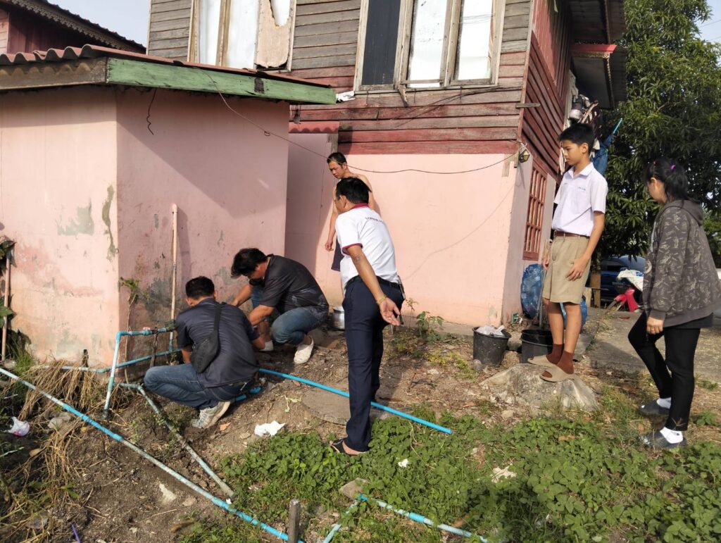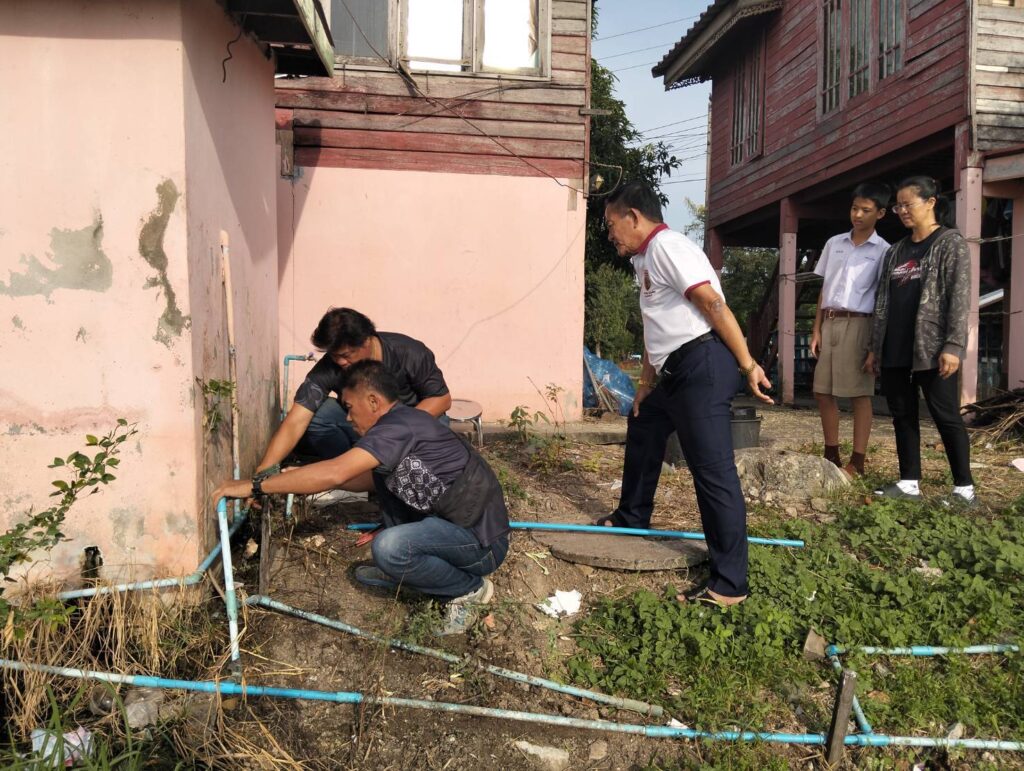ได้พาทีมงานกองช่าง อบต.หนองทรายขาว ลงพื้นที่หมู่ที่ 4 บ้านสระเตยใหญ่ บริเวณบ้านพัก 3 หลังของโรงเรียนบ้านสระเตย เพื่อทำการซ่อมแซมท่อน้ำประปาของ อบต.หนองทรายขาว ที่ชำรุดเสียหาย