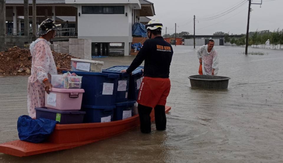ส่วนศูนย์ปฏิบัติธรรมนานาชาติสะเดา จังหวัดสงขลา ประสบภาวะน้ำท่วมสูงสุดในรอบหลายปี น้ำเอ่อล้นถึงถนนกาญจนวนิช ท่วมพื้นที่สูงกว่า 2–3 เมตร บริเวณอาคารพักและส่วนสาธารณูปโภคได้รับความเสียหายอย่างหนัก โดยเมื่อเวลา 07.00 น. ของวันที่ 24 พฤศจิกายน พระภิกษุ 3 รูปยังคงติดอยู่ชั้นสองของกุฏิที่กำลังก่อสร้าง ไม่มีไฟฟ้า ไม่มีน้ำใช้ และยังไม่ได้รับภัตตาหาร สำหรับศูนย์อบรมเยาวชนปัตตานี ระดับน้ำเริ่มสูงขึ้นตั้งแต่ช่วงเช้ามืดวันที่ 24 พฤศจิกายน ระหว่างเวลา 02.00–03.00 น. ประกอบกับฝนที่ตกลงมาอย่างต่อเนื่องตลอดทั้งวัน ส่งผลให้ปริมาณน้ำท่วมถึงฐานเจดีย์ และกำลังขยายพื้นที่ความเสียหาย