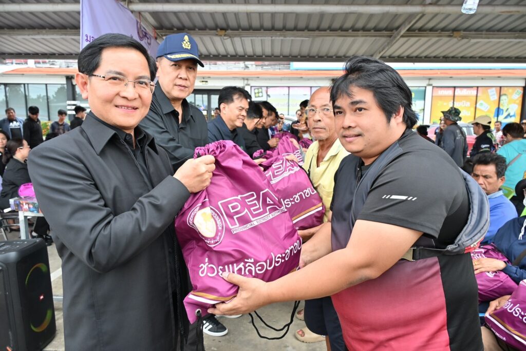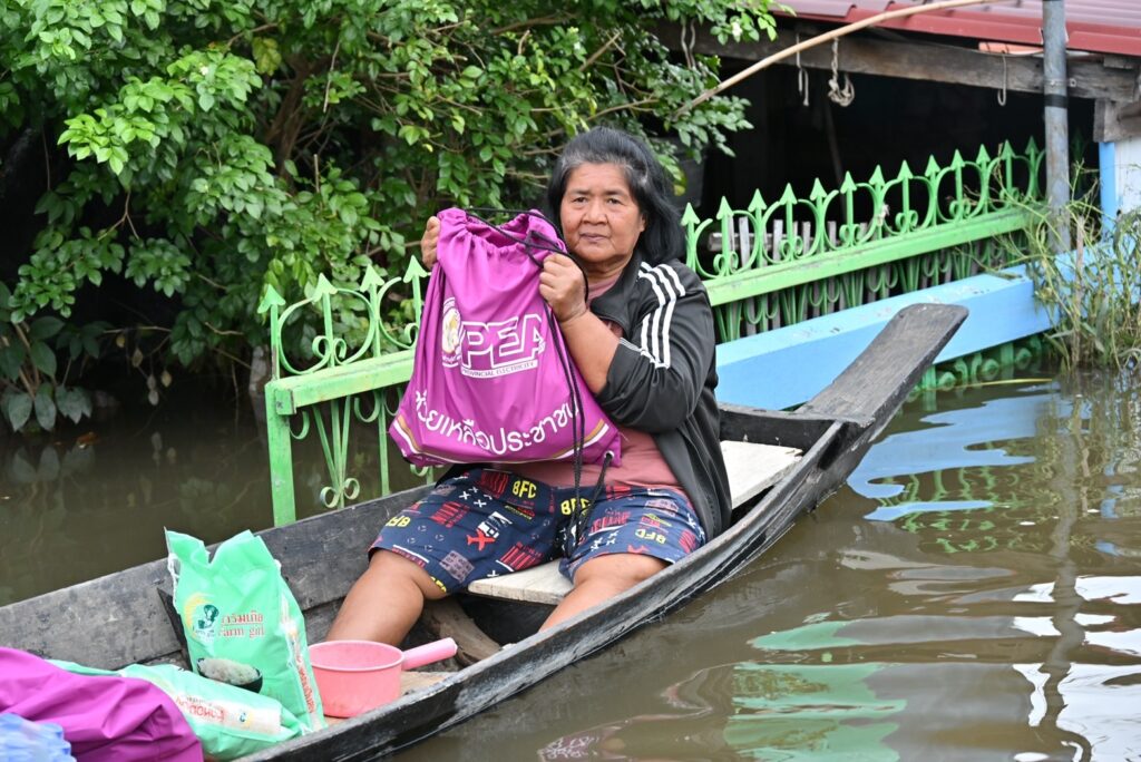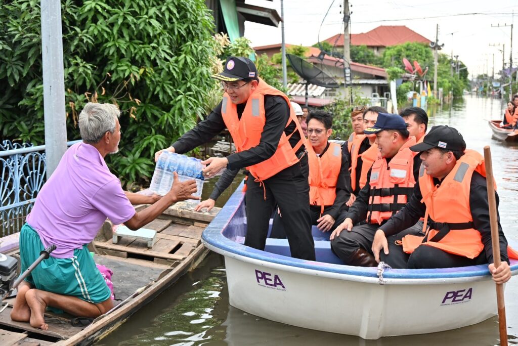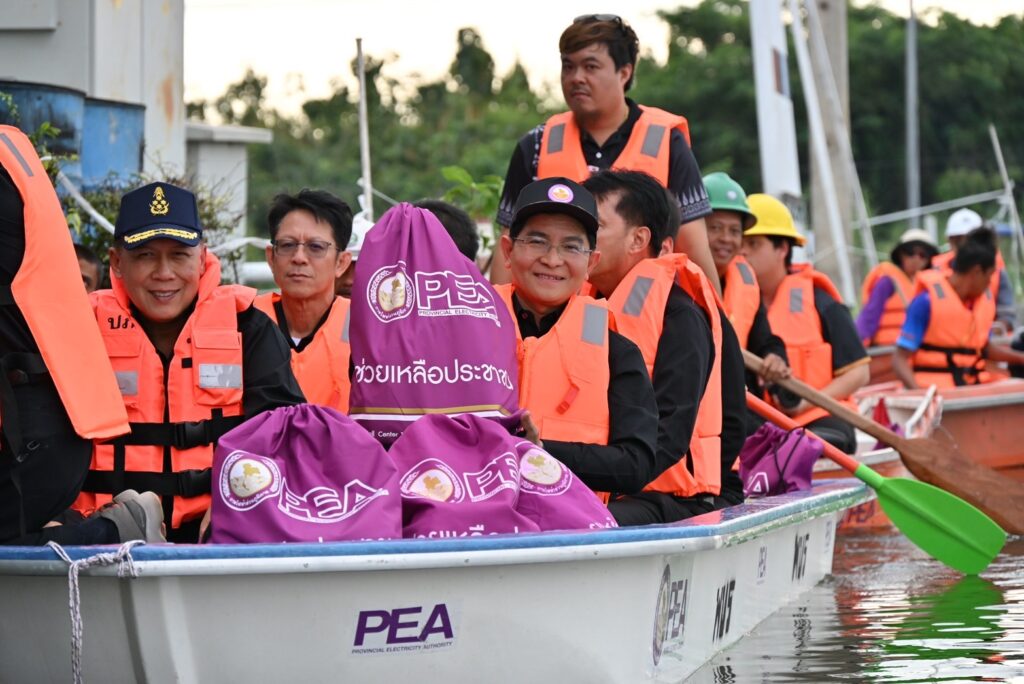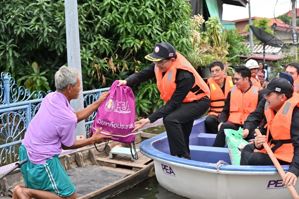 เมื่อวันที่ 19 พ.ย.68 นายมงคล ตรีกิจจานนท์ ผู้ว่าการการไฟฟ้าส่วนภูมิภาค พร้อมด้วยนางศิขริน ตรีกิจจานนท์ ประธานคณะแม่บ้านและครอบครัวการไฟฟ้าส่วนภูมิภาค นายขจร โปร่งฟ้า รองผู้ว่าการการไฟฟ้าส่วนภูมิภาค นายเมธี บุญพรหม ผู้ช่วยผู้ว่าการการไฟฟ้าส่วนภูมิภาค เขต 3 (ภาคเหนือ) จ.ลพบุรี พร้อมคณะ ร่วมกันมอบถุงยังชีพจำนวน 500 ชุด ให้แก่ผู้ประสบภัยน้ำท่วมในพื้นที่ อ.อินทร์บุรี จ.สิงห์บุรี โดยมีนายวราดิศร อ่อนนุช รองผู้ว่าราชการจังหวัดสิงห์บุรี รักษาราชการแทนผู้ว่าราชการจังหวัดสิงห์บุรี นายสมศักดิ์ เกี้ยวเกิด นายอำเภออินทร์บุรี นายนพดล มะจะกรณ์ ผู้จัดการไฟฟ้าส่วนภูมิภาคจังหวัดสิงห์บุรี นายเสกสรรค์ พุฒประเสริฐ ผู้จัดการการไฟฟ้าส่วนภูมิภาคสาขาอินทร์บุรี และหัวหน้าส่วนราชการร่วมกิจกรรม ที่ “ศูนย์รับแจ้งกระแสไฟฟ้าขัดข้อง แจ้งขอความช่วยเหลือกรณีได้รับความเดือดร้อนเกี่ยวกับระบบไฟฟ้าจากอุทกภัย” ของการไฟฟ้าส่วนภูมิภาคสาขาอินทร์บุรี จังหวัดสิงห์บุรี ที่ตั้งชั่วคราวหน้าห้างเกษรซุปเปอร์เซนเตอร์ หมู่ 2 ต.อินทร์บุรี อ.อินทร์บุรี จ.สิงห์บุรี. จากนั้นคณะของนายมงคล ตรีกิจจานนท์ ผู้ว่าการการไฟฟ้าส่วนภูมิภาค พร้อมด้วยนายวราดิศร อ่อนนุช รองผู้ว่าราชการจังหวัดสิงห์บุรี ได้ลงเรือนำถุงยังชีพและสิ่งของอุปโภคไปแจกตามบ้านเรือนที่ประชาชนไม่สามารถเดินทางออกมารับถุงยังชีพ ซึ่งสร้ามความปลื้มใจให้แก่ประชาชนที่ได้รับความเดือดร้อนในครั้งนี้