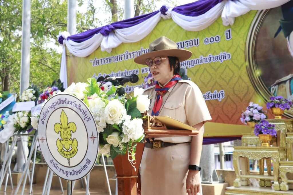 วันอังคารที่ 25 พฤศจิกายน 2568 ณ อาคารโคมโรงเรียนสิงห์บุรี อำเภอเมืองสิงห์บุรี จังหวัดสิงห์บุรี นางสาววีรวรรณ จันทนเสวี รองผู้ว่าราชการจังหวัดสิงห์บุรี เป็นประธานพิธีวางพวงมาลา ในงาน “ศตวรรษามหาธีรราชานุสรณ์” ครบรอบ 100 ปี เนื่องในวันคล้ายวันสวรรคตของพระบาทสมเด็จพระมงกุฎเกล้าเจ้าอยู่หัว ผู้พระราชทานกำเนิดลูกเสือไทย พร้อมทั้งกล่าวคำสดุดีเทิดพระเกียรติฯ และมอบเกียรติบัตรให้กับหน่วยงานที่ให้การสนับสนุนในการจัดงาน พร้อมให้โอวาทแก่ลูกเสือ เนตรนารี ผู้บังคับบัญชาลูกเสือ ผู้บำเพ็ญประโยชน์