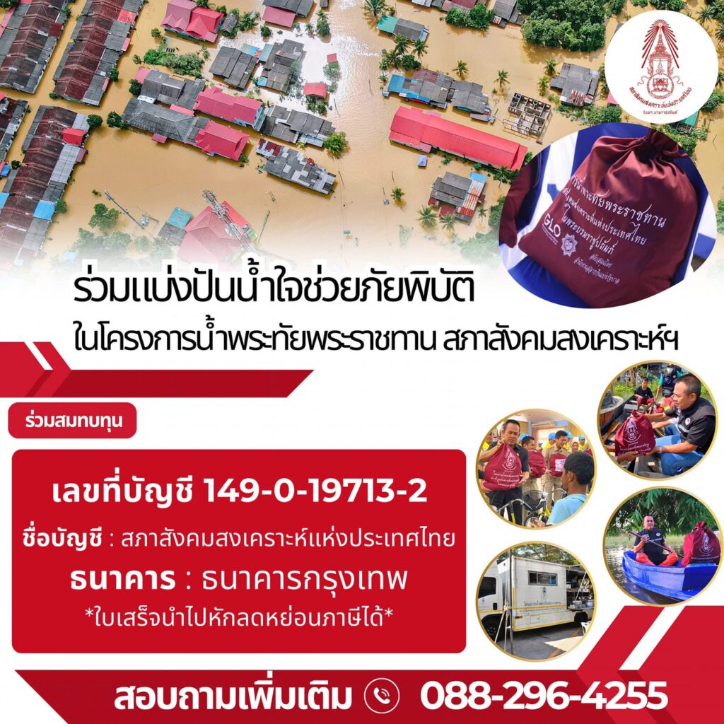 ขณะนี้หลายพื้นที่ในภาคใต้กำลังเผชิญอุทกภัยอย่างหนัก ประชาชนจำนวนมากต้องการความช่วยเหลือเร่งด่วน สภาสังคมสงเคราะห์ฯ อยู่ระหว่างการจัดเตรียม อาหารปรุงสุก ถุงยังชีพ และการสนับสนุนด้านต่าง ๆ เพื่อนำส่งถึงมือผู้ประสบภัยโดยเร็วที่สุด