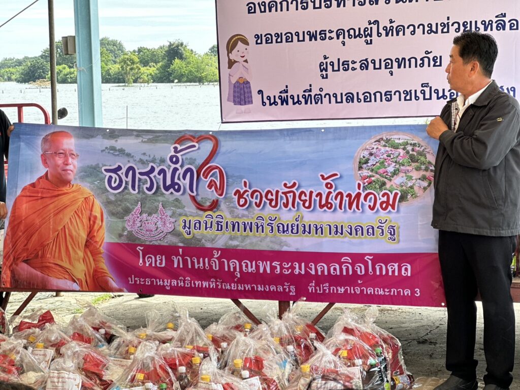 คณะมูลนิธิฯ ได้เดินทางไปยัง หมู่บ้านทำกลอง ตำบลเอกราช อำเภอป่าโมก เพื่อมอบถุงยังชีพจำนวน 200 ชุด พร้อมด้วยเสื้อผ้า ภายในบรรจุเครื่องอุปโภคบริโภคของใช้ที่จำเป็น เพื่อบรรเทาความเดือดร้อนและส่งกำลังใจให้ครอบครัวที่เผชิญผลกระทบจากอุทกภัยอย่างใกล้ชิด