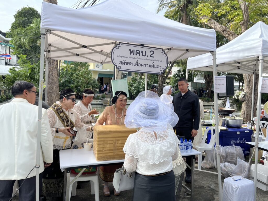 วันที่ 24 พฤศจิกายน 2568 พลตรีหญิง ดาวใจ เจิมเจิดพล ประธาน พคบ.2, อุปนายกคนที่ 3 หัวหน้าคณะกรรมการความมั่นคงของรัฐ และคณะกรรมการ พคบ.2 และ ศ.ดร.อัญชลี มีมุข อุปนายกสภานักวิชาการประจำคณะกรรมการสมัชชามวลชนเพื่อความมั่นคงภายใน กอ.รมน. และนักวิชาการพร้อมสมาชิกสมัชชามวลชนฯ เข้าร่วมงานรื่นฤดีรฤก ณ ตำหนักเพชรรัตน์ กองอำนวยการรักษาความมั่นคงภายในราชอาณาจักร พลเอก ชัยพฤกษ์ ด้วงประพัฒน์ เลขาธิการ กอ.รมน. เป็นประธานพิธี โดย พลโท ธนาธิป สว่างแสง ผอ.สมท.กอ.รมน. และข้าราชการ กอ.รมน. ให้การต้อนรับ มีกิจกรรมเทิดพระเกียรติสมพระเกียรติอย่างยิ่ง ผู้ร่วมงานแต่งกายย้อนยุคในยุคสมัยรัชกาลที่ 6 มีการประกวดเครื่องแต่งกาย และออกบูชอาหารข้าวเหนียวไก่ทอด/หมูทอด 200 ชุด, ยาดมอย่างละ 200 ชุด มีสมาชิกนักวิชาการฯ เข้าร่วมกิจกว่า 30 คน โดยมี ว่าที่พันตรี กิติเฉลิม โครงกาพย์ ให้การต้อนรับสมาชิกอย่างอบอุ่น