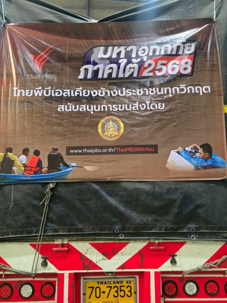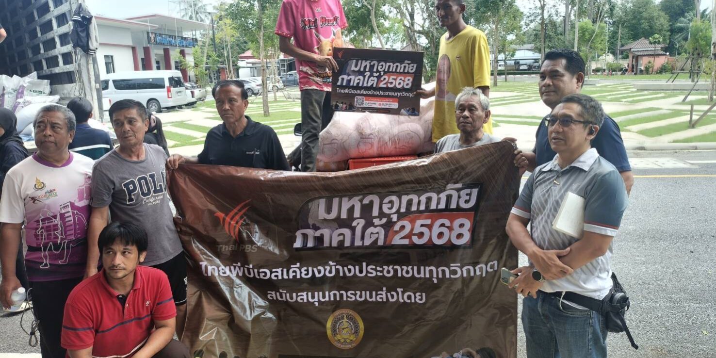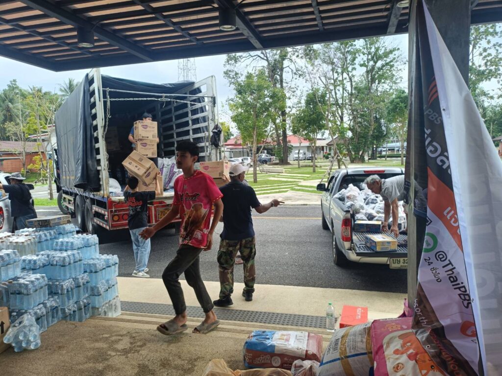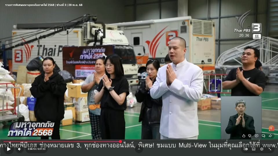 อาจารย์วิจักษณ์ สองจันทร์ ประธานมูลนิธิพุทธภูมิธรรม เดินทางมายังลานจัดเก็บสิ่งของบริจาคของสถานีโทรทัศน์ เพื่อร่วมกับ Thai PBS ส่งต่อพลังแห่งความห่วงใย ช่วยเหลือพี่น้องชาวภาคใต้ที่กำลังประสบอุทกภัยครั้งนี้