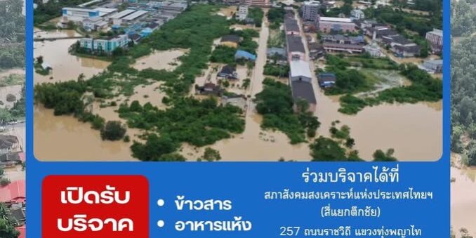 ร่วมกับ มูลนิธิสยามนนทบุรี พร้อมคณะทำงาน และทีมกู้ภัยจิตอาสา ระดมสรรพกำลังลงพื้นที่อย่างเร่งด่วน เพื่อช่วยเหลือประชาชนที่ได้รับผลกระทบจากน้ำท่วมในอำเภอหาดใหญ่ จังหวัดสงขลา รวมถึงพื้นที่ที่ได้รับความเสียหายอย่างหนัก