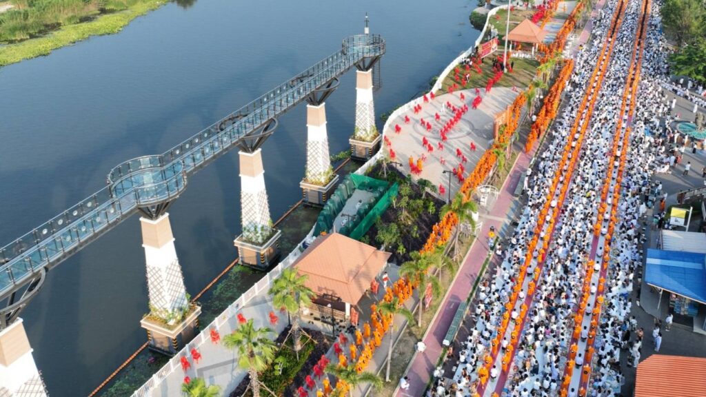 ด้านนางพรรณวิภา ปิยัมปุตระ รองผู้ว่าราชการจังหวัดกาญจนบุรี ได้กล่าวถึงความพร้อมของจังหวัด ภาคศาสนา และภาคประชาชน ในการจัดงานบุญครั้งใหญ่ คาดว่าจะมีทั้งประชาชนและนักท่องเที่ยวเดินทางเข้าร่วมจำนวนมาก ส่งผลดีต่อ เศรษฐกิจ การท่องเที่ยว โรงแรม ร้านอาหาร และธุรกิจบริการในพื้นที่ สอดรับกับนโยบายส่งเสริม Soft Power ด้านพุทธศาสนาและวัฒนธรรมของจังหวัด ทางจังหวัดกาญจนบุรีพร้อมต้อนรับพุทธศาสนิกชนจากทั่วประเทศร่วมพิธีตักบาตรพระ 10,000 รูป ซึ่งจะจัดขึ้นอย่างสง่างาม สมศักดิ์ศรีเมืองศรีวัฒนธรรม และร่วมกันสร้างพลังศรัทธาเพื่อความเป็นสิริมงคลแก่บ้านเมือง ชูภาพลักษณ์จังหวัดในฐานะเมืองท่องเที่ยวที่งดงามทั้งธรรมชาติ ประวัติศาสตร์ และวัฒนธรรมอันดีงาม