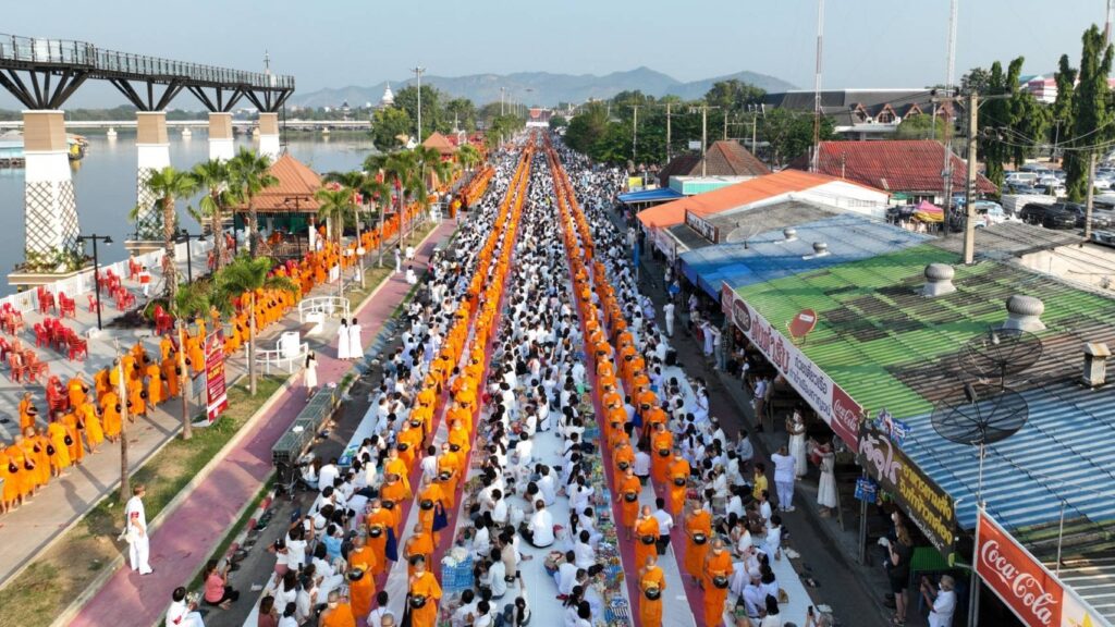 วันที่ 29 พฤศจิกายน 2568 ณ ลานกิจกรรม Sky Walk โซนปลายสักทอง จังหวัดกาญจนบุรี ได้มีการจัดงานแถลงข่าวเตรียมความพร้อมพิธีตักบาตรพระ 10,000 รูป ในวันเสาร์ที่ 20 ธันวาคม 2568 เวลา 06.00 น. ณ บริเวณถนนสองแคว (Sky Walk) ตำบลบ้านใต้ อำเภอเมืองกาญจนบุรี จังหวัดกาญจนบุรี เนื่องในโอกาสทำบุญเมืองครบรอบ 194 ปี จังหวัดกาญจนบุรี และเพื่ออุทิศถวายเป็นพระราชกุศลแด่ สมเด็จพระนางเจ้าสิริกิติ์ พระบรมราชินีนาถ พระบรมราชชนนีพันปีหลวง