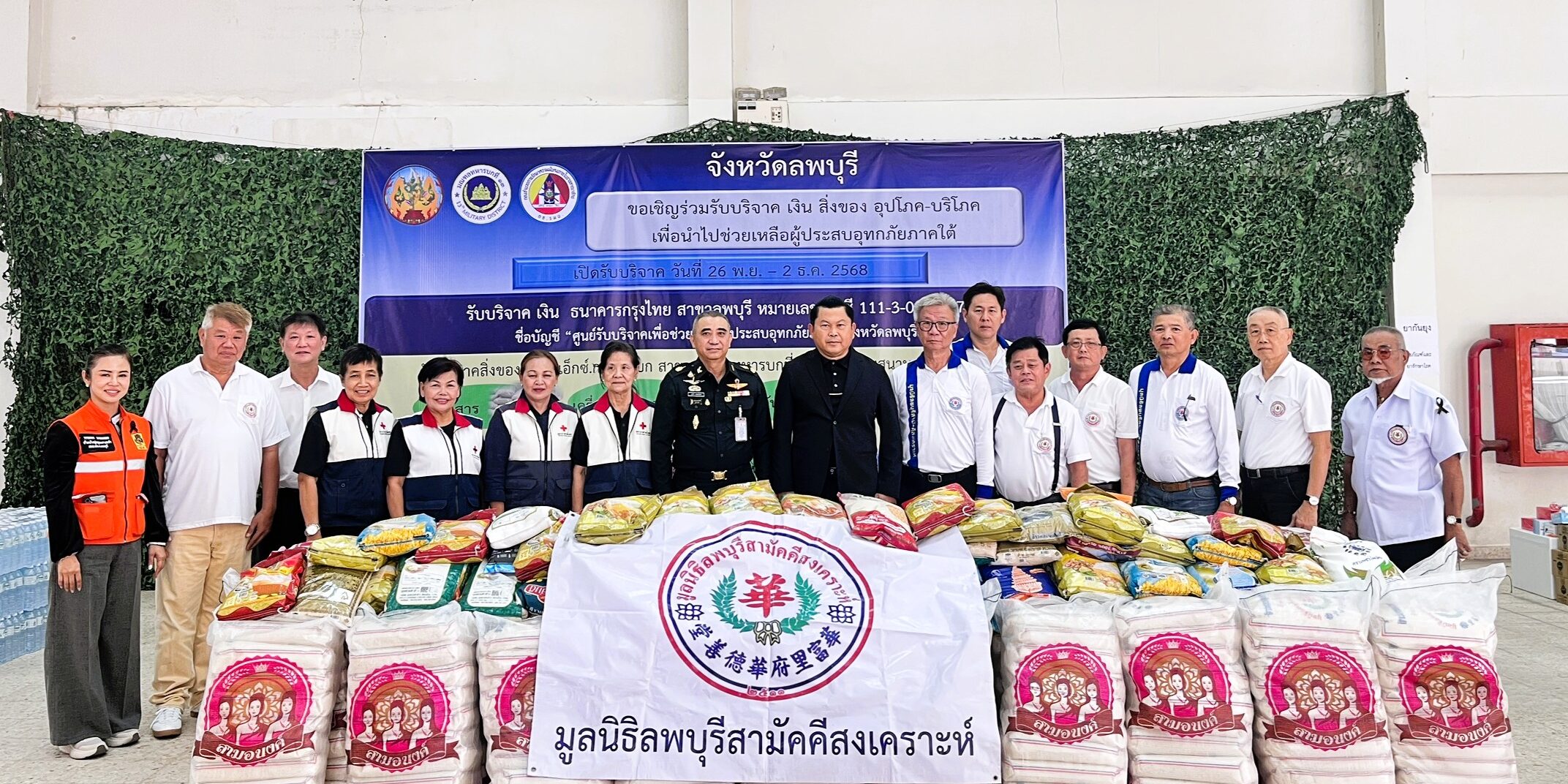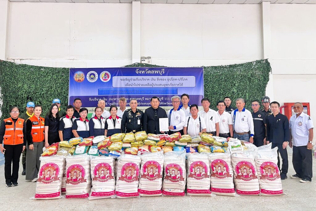 วันที่ 28 พฤศจิกายน 2568 ณ สถานีบริการน้ำมันเชื้อเพลิงเพื่อสวัสดิการ มณฑลทหารบกที่ 13 นายปรัชญา เปปะตัง รองผู้ว่าราชการจังหวัดลพบุรี รักษาราชการแทนผู้ว่าราชการจังหวัดลพบุรี พร้อมด้วย พลตรี ธารา เจนตลอด ผู้บัญชาการมณฑลทหารบกที่ 13 ร่วมรับมอบสิ่งของจากมูลนิธิลพบุรีสามัคคีสงเคราะห์ คณะกรรมการ และสมาชิกเหล่ากาชาดจังหวัดลพบุรี พี่น้องประชาชน ส่วนราชการ และภาคเอกชน ที่นำมาบริจาคเพื่อส่งต่อเป็นน้ำใจแก่พี่น้องผู้ประสบภัยในพื้นที่ภาคใต้