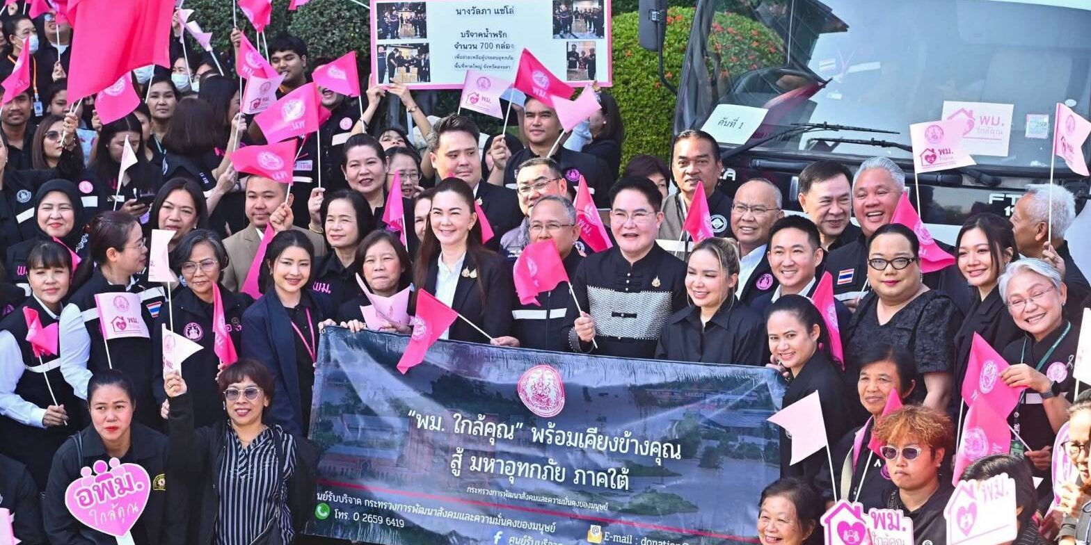 วันที่ 2 ธันวาคม 2568 เวลา 09.00 น. นายอัครา พรหมเผ่า รัฐมนตรีว่าการกระทรวงการพัฒนาสังคมและความมั่นคงของมนุษย์ (รมว.พม.) เป็นประธานเปิดกิจกรรม “พม. ใกล้คุณ” พร้อมเคียงข้างคุณ สู้ มหาอุทกภัยภาคใต้ เพื่อกลุ่มเป้าหมายกระทรวงการพัฒนาสังคมและความมั่นคงของมนุษย์ กลุ่มเปราะบาง ผู้ประสบปัญหาความเดือดร้อน หรืออยู่ในภาวะยากลำบาก ผู้ประสบภัย และประชาชน ที่ได้รับผลกระทบจากอุทกภัยพร้อมปล่อยขบวนรถสิ่งของบริจาค “พม. ใกล้คุณ” พร้อมเคียงข้างคุณ สู้ มหาอุทกภัยภาคใต้ เพื่อนำไปส่งมอบความช่วยเหลือแก่กลุ่มเปราะบางและประชาชนที่ประสบอุทกภัยในพื้นที่ภาคใต้ อีกทั้ง มีการรับมอบสิ่งของบริจาคจากภาคีเครือข่าย ได้แก่ บริษัท ซีดริ้ง จำกัด, บริษัท เค เบฟเวอเรจ จำกัด คณะกรรมการเคหะชุมชนห้วยขวาง และบริษัท ผลิตภัณฑ์อาหารกว้างไพศาล จำกัด (มหาชน) (ปุ้มปุ้ย) โดยมี นายกันตพงศ์ รังษีสว่าง ปลัดกระทรวงการพัฒนาสังคมและความมั่นคงของมนุษย์ พร้อมด้วยคณะผู้บริหาร ศิลปินดารานักแสดง อาทิ ดร.ปิ๊งปิ๊ง-รภัทร เอกนิธิเศรษฐ์ นักแสดงจากละคร ปานดวงใจ Signature น้ำ จุฑามาศ หวังสวัสดิ์ รวมถึงทีม พม.ใกล้คุณ เข้าร่วม ณ บริเวณหน้าอาคารกรมพัฒนาสังคมและสวัสดิการ กระทรวงการพัฒนาสังคมและความมั่นคงของมนุษย์ สะพานขาว กรุงเทพฯ