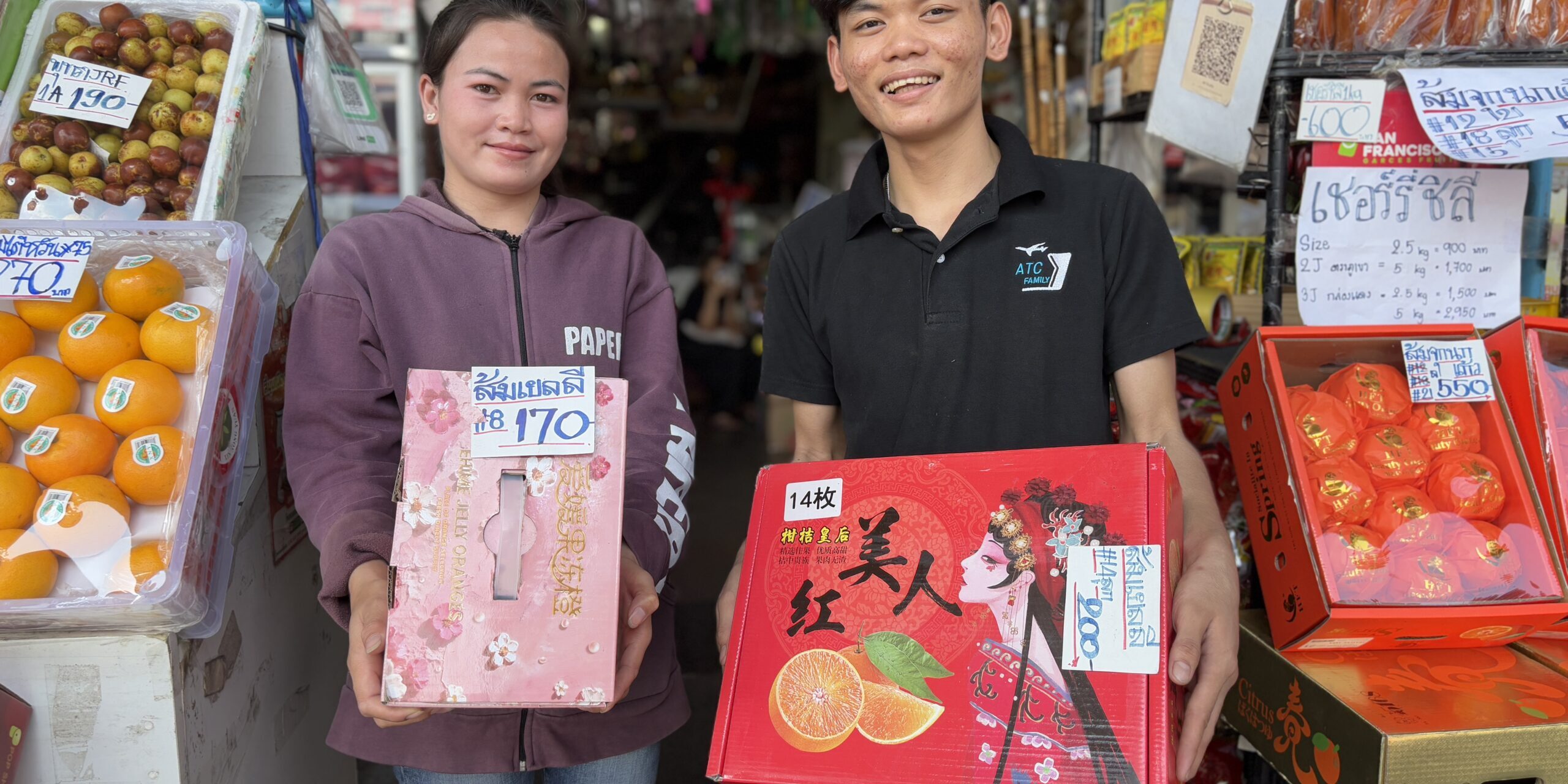 หนึ่งในไฮไลท์คือ “ตลาดผลไม้ต่างประเทศ” ที่คัดสรรผลไม้สดเหมือนเพิ่งลงจากเครื่องส่งตรงจากหลายประเทศ พร้อมห้องเย็นควบคุมคุณภาพ ครอบคลุมทั้งราคาขายส่งและปลีก ตัวอย่างราคาน่าซื้อ ได้แก่ แอปเปิล Envy Jumbo Size ลังละ 33–35 ลูก ราคาเริ่มต้น 1,150 บาท, ส้มแมนดารินไต้หวัน ลังละ 27–30 ลูก ราคาเริ่มต้น 550 บาท, องุ่นไข่ปลาคาเวียร์ ลังละ 4.5–5 กิโลกรัม ราคาเริ่มต้นตะกร้าละ 250 บาท และสาลี่หิมะเกาหลี Jumbo Size ลังละ 5–8 ลูก ราคาเริ่มต้น 400 บาท โดยทุกชนิดสามารถแพ็กเป็นของขวัญได้ทันที หรือจัดกระเช้า–ตะกร้าตามงบประมาณ