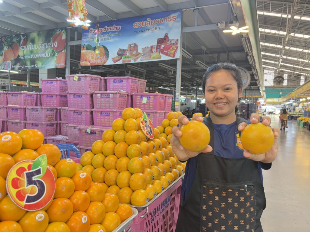 อีกหนึ่งโซนสำคัญคือ “ตลาดส้ม” แหล่งรวมส้มคุณภาพจากสวนไทย ไม่ว่าจะเป็นส้มเขียวหวาน ส้มสายน้ำผึ้ง และส้มโชกุน จากพื้นที่ปลูกขึ้นชื่อทั่วประเทศ เช่น เชียงใหม่ กำแพงเพชร สุโขทัย และรังสิต–ปทุมธานี ภายใต้แนวคิด “อุดหนุนส้มไทย ส่งสุขให้คนไทย” เพื่อให้ผู้บริโภคได้รับทั้งความอร่อยและร่วมสนับสนุนเกษตรกรไทยไปพร้อมกัน