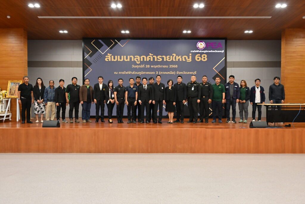 วันที่ 28 พฤศจิกายน 2568 นายเมธี บุญพรหม ผู้ช่วยผู้ว่าการ การไฟฟ้าส่วนภูมิภาค เขต 3 (ภาคเหนือ) จังหวัดลพบุรี เป็นประธานในการเปิดการสัมมนาลูกค้ารายใหญ่ ประจำปี 2568 ในพื้นที่รับผิดชอบของจังหวัดลพบุรี และการไฟฟ้าส่วนภูมิภาคในสังกัด โดยมีนายวิโรจน์ จันอินทร์ ผู้จัดการ การไฟฟ้าส่วนภูมิภาคจังหวัดลพบุรี กล่าวรายงาน พร้อมผู้บริหารและพนักงานในสังกัด ซึ่งการสัมมนาดังกล่าว ได้รับการตอบรับจากกลุ่มผู้บริหารของบริษัทที่เป็นลูกค้าของการไฟฟ้าส่วนภูมิภาคเป็นอย่างดี โดยมีลูกค้ารายใหญ่ประกอบด้วย โรงงานอุตสาหกรรม และหน่วยงานภาครัฐ บริษัทเอกชน เข้าร่วมการสัมมนากว่า 150 คน ณ ห้องประชุม ชั้น 2 อาคารอเนกประสงค์ สำนักงานการไฟฟ้าส่วนภูมิภาค เขต 3 (ภาคเหนือ) จังหวัดลพบุรี