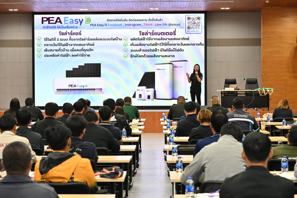 การบรรยายในหัวข้อ ธุรกิจพลังงานแสงอาทิตย์ โดย PEA Easy D, ธุรกิจยานยนต์ไฟฟ้า”(EV Charger & PEA VOLTA) และการบรรยายพิเศษในหัวข้อ “อาชญากรรมทางไซเบอร์ (Cyber Crime)” โดย พล.ต.ต.โชติวัฒน์ เหลืองวิลัย ผู้บังคับการสืบสวนสอบสวน กองบัญชาการตำรวจนครบาล IDMB รวมถึงการรับฟังเสียงของลูกค้า ถาม–ตอบปัญหาและแลกเปลี่ยนข้อคิดเห็นและข้อเสนอแนะของลูกค้า เพื่อนำไปปรับปรุงแก้ไขให้สอดคล้องกับความต้องการของลูกค้า เพื่อสร้างความพึงพอใจสูงสุดให้กับลูกค้าอย่างแท้จริง