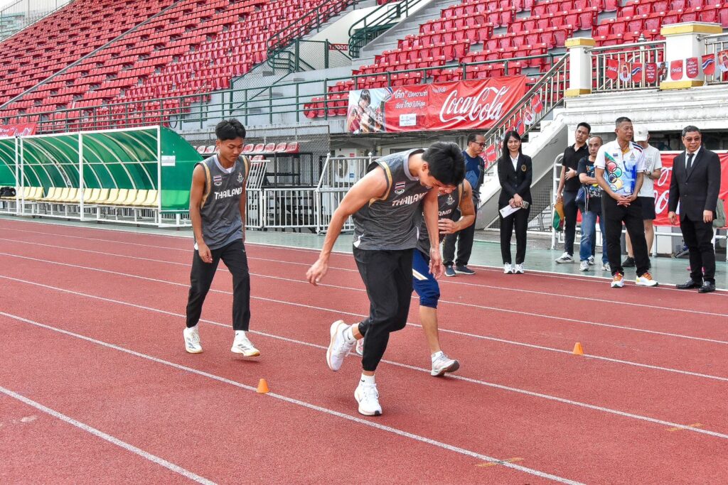 ดร.ณัฏฐ์ ธีรณัฐสุภานนท์ ประธานมูลนิธิกองทุนพัฒนาการกีฬา ยกคณะเยี่ยมชมการฝึกซ้อมและมอบกำลังใจให้ทีมกรีฑาทีมชาติไทย นำโดย บิว-ภูริพล บุญสอน และ ต้า-สรอรรถ ดาบบัง โดยมี โค้ชจี เจนทรี แบรดลีย์ โค้ชระดับโลกจากสหรัฐอเมริกา คอยติว กรีฑายืนยันตั้งเป้าที่ 17 เหรียญทอง