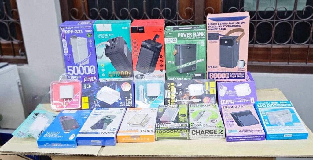 -ตรวจยึดพาวเวอร์แบงค์และหัวชาร์จ จำนวน 49,000 ชิ้น มูลค่า 10 ล้านบาท จับกุมได้ที่โกดัง