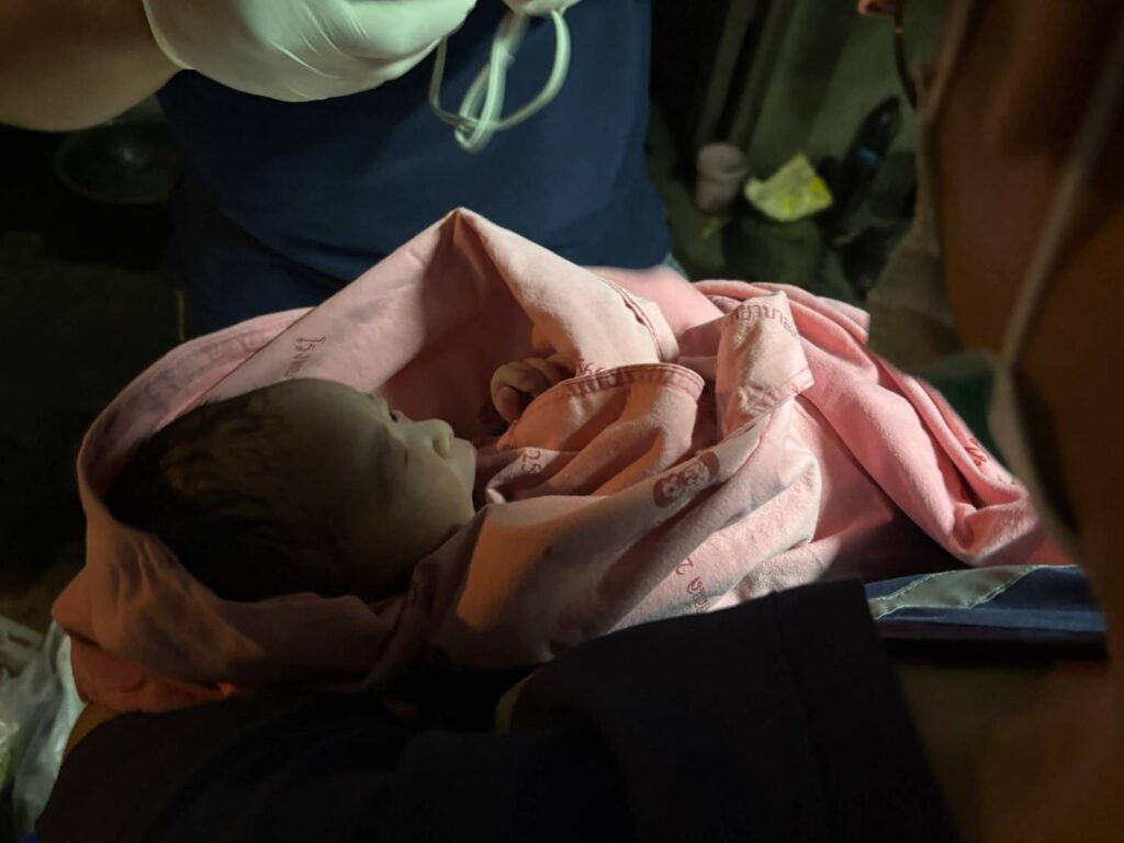 เมื่อถึงที่เกิดเหตุ เจ้าหน้าที่พบผู้เป็นแม่พร้อมทารกแรกเกิดเพศชาย ซึ่งคลอดออกมาในช่วงเวลา 21.58 น. โดยมีทีมแพทย์ฉุกเฉินและกู้ชีพเข้าทำการประเมินอาการและปฐมพยาบาลเบื้องต้นอย่างเร่งด่วน ในภาพจะเห็นเจ้าหน้าที่กำลังปฏิบัติงานในที่เกิดเหตุและทำการช่วยเหลือทั้งแม่และเด็กด้วยความระมัดระวัง (ตามภาพถ่ายที่แนบมา)