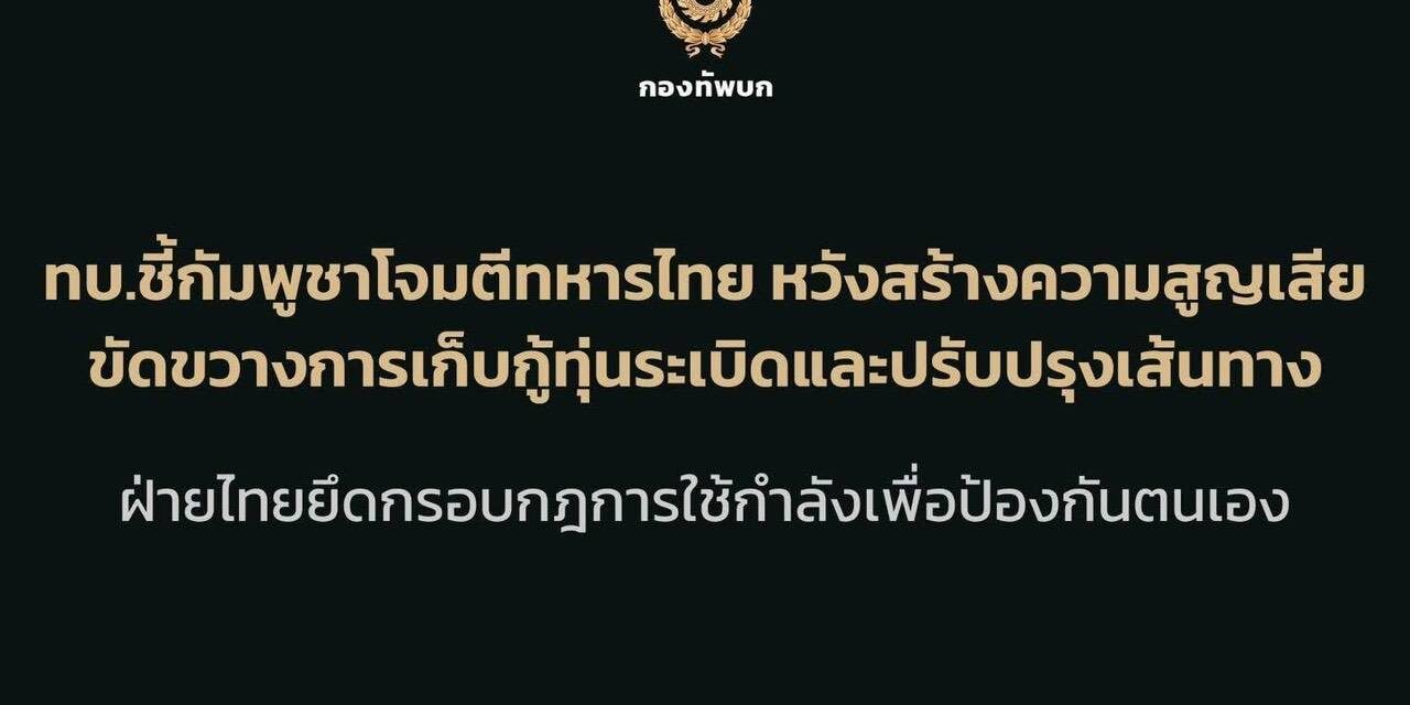 จากกรณีทหารกัมพูชาใช้อาวุธโจมตีฝ่ายไทย เมื่อ 7 ธ.ค. 68 เวลา 14.15 น. บริเวณพื้นที่ ภูผาเหล็ก–พลาญหินแปดก้อน อ.กันทรลักษ์ จ.ศรีสะเกษ ส่งผลให้มีกำลังพลได้รับบาดเจ็บ 2 นาย นั้น
