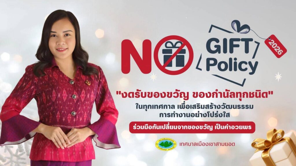 ทางคณะผู้บริหารเทศบาลเมืองเขาสามยอด “งดรับของขวัญ ของกำนัลทุกชนิด ในทุกเทศกาล“