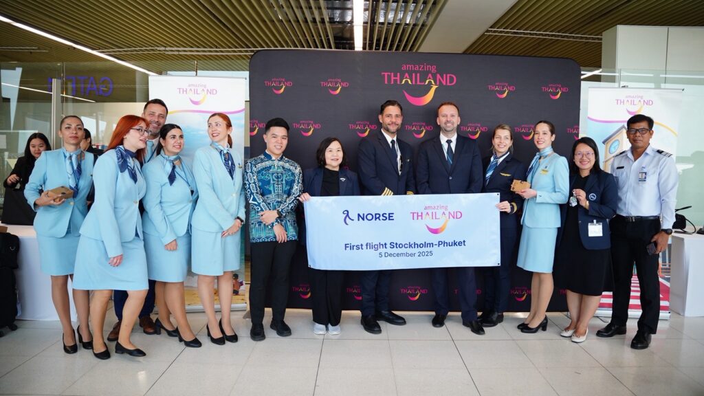 สำหรับเที่ยวบินแรก N0 195 เส้นทางสตอกโฮล์ม – ภูเก็ตของสายการบิน Norse Atlantic Airways จะออกเดินทางจากท่าอากาศยานสตอกโฮล์ม-อาร์ลันดา ราชอาณาจักรสวีเดน ถึงท่าอากาศยานภูเก็ตในวันที่ 5 ธันวาคม 2568 เวลา 08.25 น. โดยมีความจุผู้โดยสาร 338 ที่นั่ง ให้บริการสัปดาห์ละ 1 เที่ยวบิน โอกาสนี้ นางสาวสุลัดดา ศรุติลาวัณย์ ผู้อำนวยการภูมิภาคยุโรป ททท. ให้การต้อนรับคณะนักท่องเที่ยวอย่างอบอุ่น