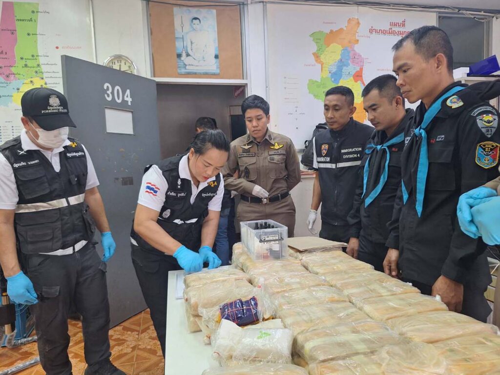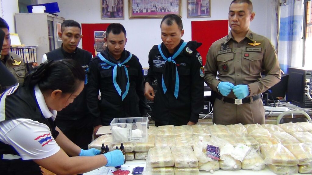จากนั้น เจ้าหน้าที่จึงได้เข้าทำการตรวจสอบรถยนต์คันดังกล่าว พบกระสอบปุ๋ย จำนวน 2 กระสอบ วางอยู่ภายในห้องโดยสารด้านหลังเบาะคนขับ เมื่อเปิดดูภายในพบว่าเป็นยาบ้าจำนวนมาก (ประมาณ 400,000 เม็ด) ซุกซ่อนอยู่ เจ้าหน้าที่ชุดตรวจยึดจึงได้ทำการเคลื่อนย้ายรถยนต์ของกลางพร้อมยาเสพติดทั้งหมด นำมายังสถานีตำรวจภูธรเมืองมุกดาหาร ได้ทำการตรวจสอบของกลางอย่างละเอียดอีกครั้ง จึงได้ทำบันทึกการตรวจยึดและประสานเจ้าหน้าที่พิสูจน์หลักฐาน (พฐ) เข้าเก็บรวบรวบรวมพยานหลักฐานทางนิติวิทยาศาสตร์ (DNA/ลายนิ้วมือแฝง) ภายในรถยนต์เพื่อใช้ในการติดตามตัวผู้กระทำความผิดมาดำเนินคดี และได้แจ้งข้อกล่าวหาว่า “มียาเสพติดให้โทษประเภท 1 (ยาบ้า) ไว้ในครอบครองโดยไม่ได้รับอนุญาต อันเป็นการกระทำเพื่อการค้า และก่อให้เกิดการแพร่กระจายในกลุ่มประชาชน” (ผู้ต้องหาหลบหนี) ก่อนนำของกลางทั้งหมด ส่งพนักงานสอบสวน สภ.เมืองมุกดาหาร เพื่อดำเนินการสืบสวนสอบสวนติดตามเจ้าของรถและผู้กระทำความผิดมาดำเนินคดีตามกฎหมายต่อไป..