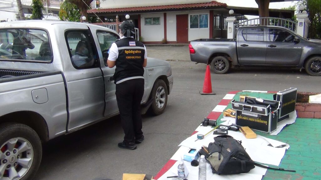 จนกระทั่งไปถึงบริเวณทางตัน (ทุ่งนา) บ้านท่าไคร้ รถยนต์ดันดังกล่าวไม่สามารถไปต่อได้ ผู้ขับขี่ (ชายไทย ไม่ทราบชื่อ-นามสกุลจริง) ได้เปิดประตูรถและวิ่งหลบหนีเข้าไปในทุ่งนาอาศัยความมืด และความชำนาญพื้นพื้นที่หลบหนีไปได้ เจ้าหน้าที่ได้กระจายกำลังติดตามค้นหาแต่ไม่พบตัว