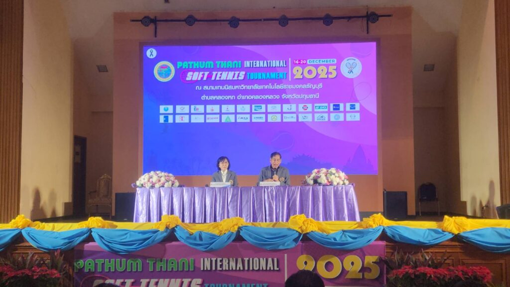 เมื่อเวลา 10.00 น. วันที่ 11 ธันวาคม 2568 พลตำรวจโท คำรณวิทย์ ธูปกระกระจ่าง นายกองค์การบริหารส่วนจังหวัดปทุมธานี เป็นประธานในงานแถลงข่าว โครงการแข่งขันกีฬาซอฟท์เทนนิสนานาชาติ Pathum Thani International Soft Tennis Tournament 2025 ณ ห้องประชุมสงค์ธนาพิทักษ์ มหาวิทยาลัยเทคโนโลยีราชมงคลธัญบุรี ต.คลองหก อ. คลองหลวง จ.ปทุมธานี โดยมี ร้อยตำรวจเอก ดร.ตรีลุพธ์ ธูปกระจ่าง นายกเทศมนตรีนครรังสิต พร้อมนายณภัทร เลี่ยมสงวน ที่ปรึกษานายกเทศมนตรีนครรังสิต ผู้บริหาร สมาคมกีฬาซอฟท์เทนนิสแห่งประเทศไทย ให้เกียรติร่วมงานฯ