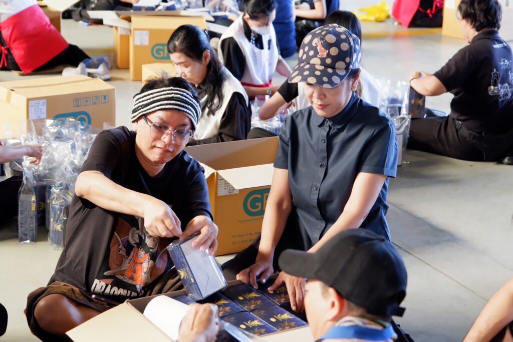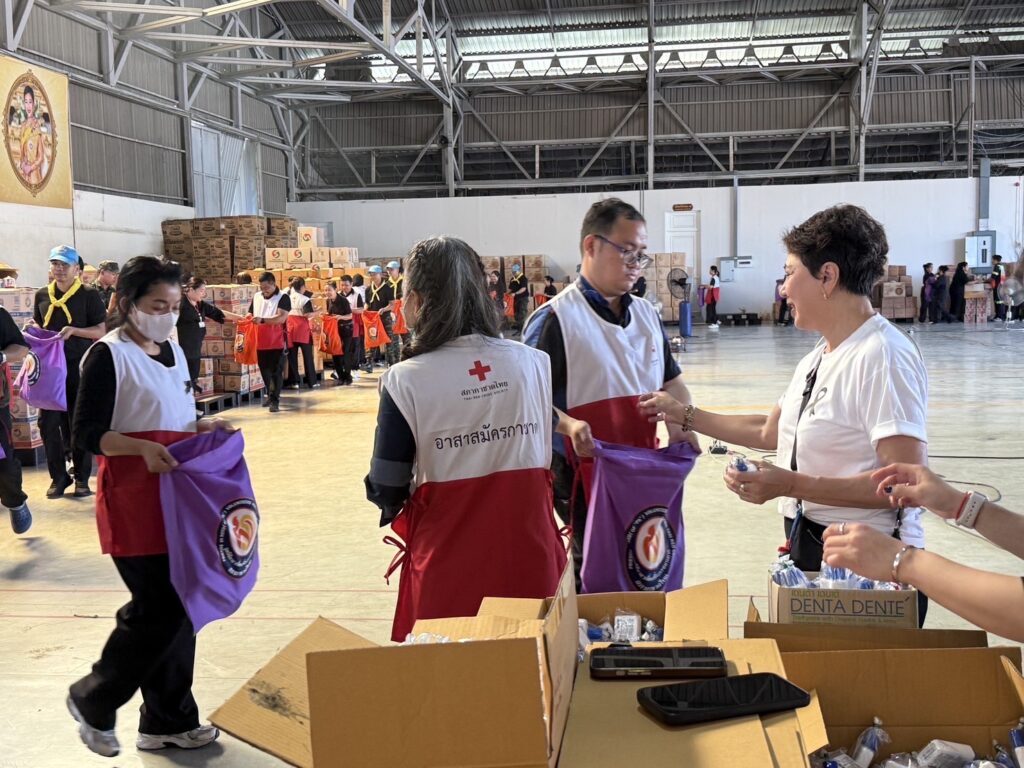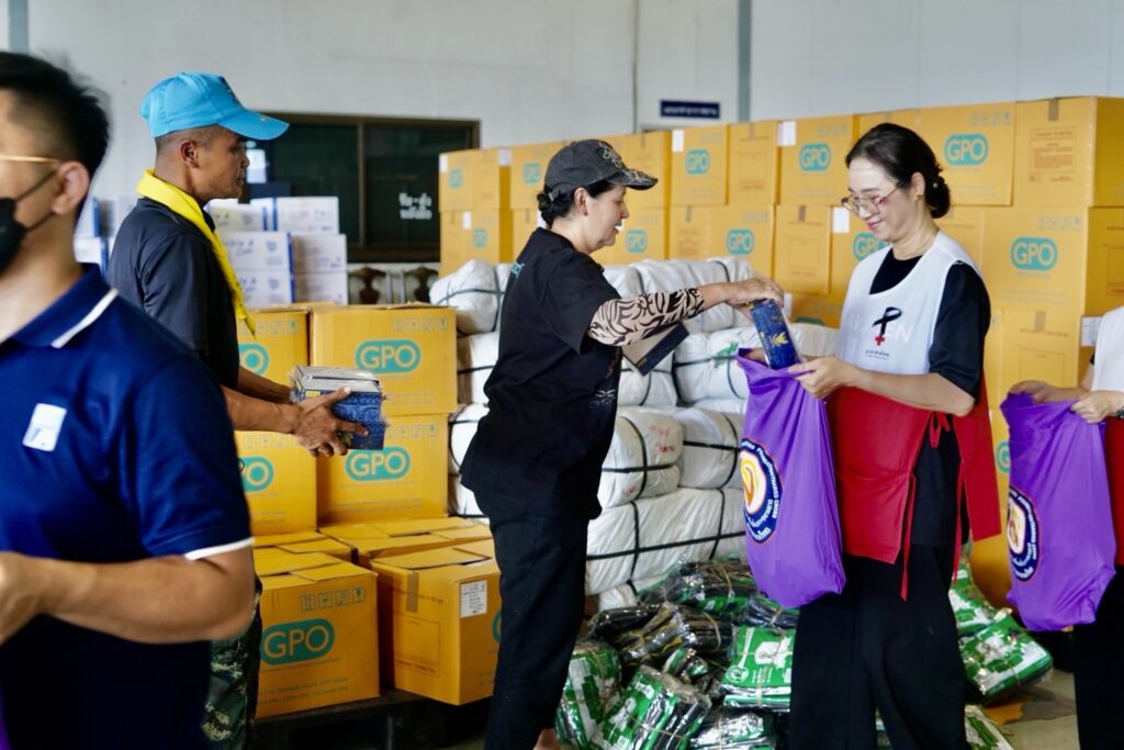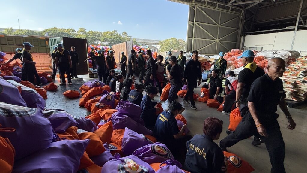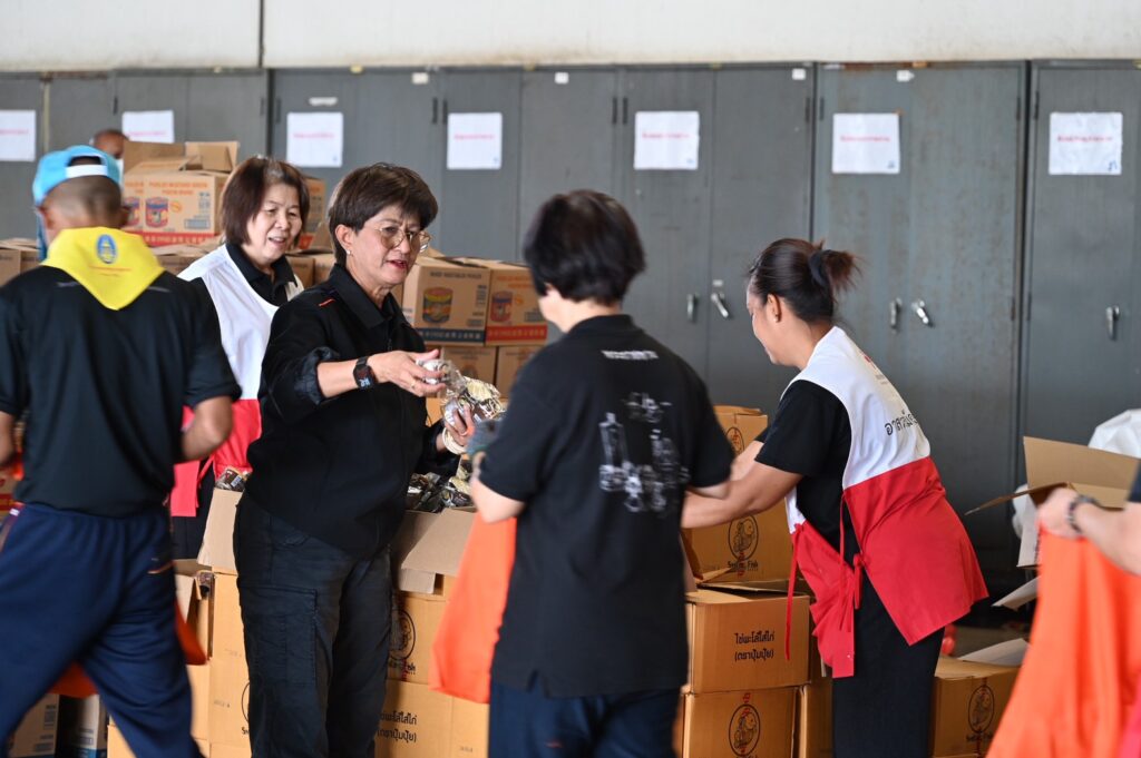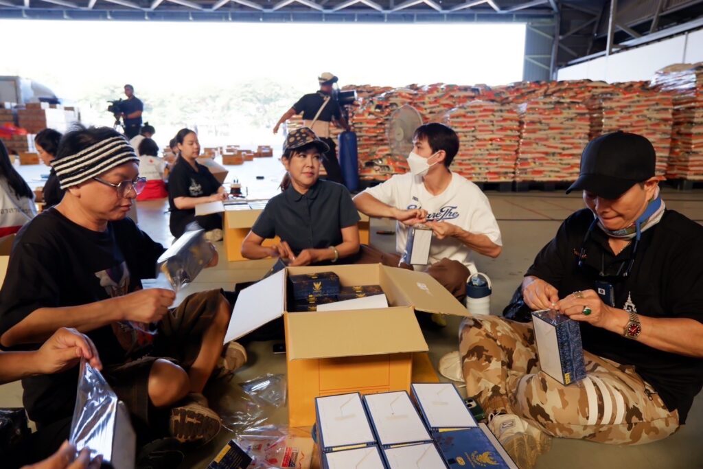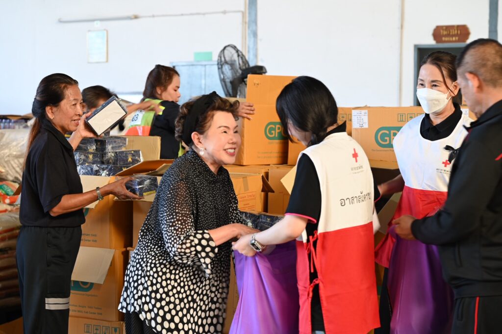 เมื่อวันที่ 8 และวันที่ 10 ธันวาคม 2568 เวลา 09.00 น. ที่ผ่านมา ศาลาเฉลิมกรุง ร่วมกับ ศิลปินนักแสดงและนักร้องจิตอาสา เข้าร่วมบรรจุถุงยังชีพพระราชทาน ช่วยเหลือผู้ประสบอุทกภัย ร่วมกับมูลนิธิอาสาเพื่อนพึ่ง (ภาฯ) ยามยาก สภากาชาดไทย ณ กองการบิน ศูนย์การเคลื่อนย้ายกองทัพบก บางเขน เพื่อเตรียมส่งต่อให้ผู้ประสบภัย นำทีมโดย ดร.นฤมล ล้อมทอง กรรมการผู้จัดการศาลาเฉลิมกรุงและกรรมการมูลนิธิอาสาเพื่อนพึ่ง (ภาฯ) ยามยาก สภากาชาดไทย พร้อมด้วยนักแสดงและนักร้องจิตอาสา อาทิ โย – ทัศน์วรรณ เสนีย์วงศ์ ณ อยุธยา, อี๊ด – ดวงใจ หทัยกาญจน์, ตุ๊ก – ดวงตา ตุงคะมณี, ผัดไท – ดีใจ ดีดีดี, ธงธง – นที ธีระเสรีวงศ์, ก้อง – สรวิชญ์ สุบุญ, แตน – ราตรี วิทวัส, อ้อย – จิระวดี อิศรางกูร ณ อยุธยา, พิม – พิมพ์พรรณ ชลายนคุปต์, โอ – อนุชิต สพันธุ์พงษ์, ลี – ฐานัฐพ์ โล่ห์คุณสมบัติ, เป้ – ทวีฤทธิ์ จุลละทรัพย์, โกมุท คงเทศ, บาร็อก – ชลธาร เซ็นเชาวนิช, เข้ม – ศุภกิจ กัลยาณกุล พร้อมด้วยนักแสดงจากช่อง 3 ปู – ปริศนา กล่ำพินิจ, สมิธ – ภาสวิชญ์ บูรณนัติ, ยิหวา – ปรียากานต์ ใจกันทะ, ตี๋ – ธนพล จารุจิตรานนท์, ปอม – ภาสกร เครือโสภณ, เบสท์ – ชนิดาภา พงศ์ศิลป์พิพัฒน์ และ นีญ่า มากีลา ฯลฯ โดยมีจิตอาสาภาคประชาชน และกำลังพลจากกองทัพ พร้อมด้วยเจ้าหน้าที่มูลนิธิฯ ร่วมกันจัดเตรียมเครื่องอุปโภคบริโภคที่จำเป็นต่อการดำรงชีพ จำนวน 15,200 ถุง พร้อมลำเลียงขึ้นรถบรรทุก เพื่อส่งไปช่วยเหลือผู้ประสบอุทกภัยในพื้นที่ จังหวัดสุพรรณบุรี จังหวัดสงขลา จังหวัดสตูล จังหวัดยะลา จังหวัดปัตตานี และจังหวัดนราธิวาส