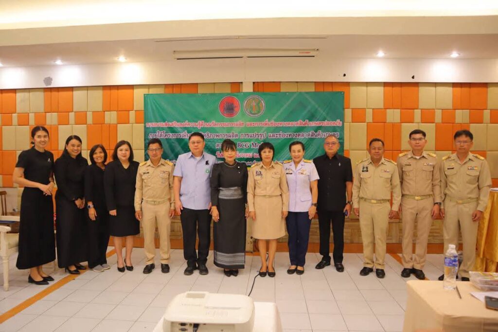 วันที่ 15 ธันวาคม 2568 เวลา 09.30 น. ณ ภัตตาคารไพบูลย์ไก่ย่าง นางสาววีรวรรณ จันทนเสวี รองผู้ว่าราชการจังหวัดสิงห์บุรี เป็นประธานในพิธีเปิดโครงการเพิ่มประสิทธิภาพการผลิตและการตลาดสินค้าเกษตรปลอดภัย โดยนางอัศนีย์ บุษบาแย้ม เกษตรและสหกรณ์จังหวัดสิงห์บุรี จัดโครงการเพิ่มประสิทธิภาพการผลิต การแปรรูป และช่องทางการตลาดสินค้าเกษตรตามแนวคิด BCG Model เพื่อส่งเสริมความรู้ด้านนวัตกรรมการผลิตและเพิ่มช่องทางการตลาดสำหรับสินค้าเกษตรปลอดภัย