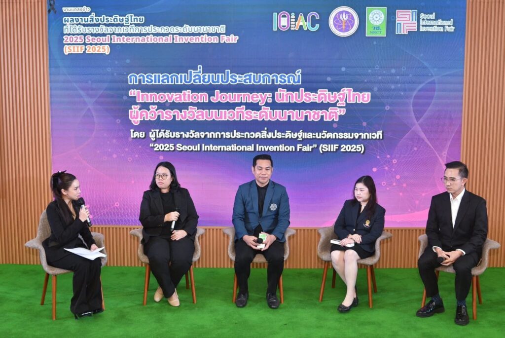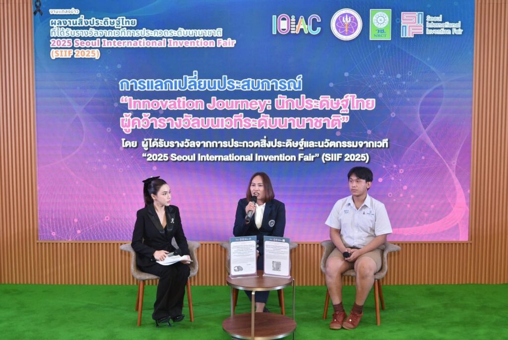 ดร.วิภารัตน์ ดีอ่อง ผู้อำนวยการสํานักงานการวิจัยแห่งชาติ กล่าวว่า การแถลงข่าวครั้งนี้มีวัตถุประสงค์เพื่อเผยแพร่ความสำเร็จของนักประดิษฐ์ไทยที่เข้าร่วมประกวดในเวที “2025 Seoul International Invention Fair” (SIIF 2025) ซึ่ง (วช.) ภายใต้กระทรวง อว. ทำหน้าที่เปิดรับสมัคร พิจารณา และกลั่นกรองผลงานสิ่งประดิษฐ์และนวัตกรรมของไทย เพื่อเข้าร่วมประกวดในนามประเทศไทย ซึ่งกระบวนการดังกล่าวได้เปิดโอกาสให้เกิดการบูรณาการความร่วมมือจากทุกภาคส่วน และสะท้อนให้เห็นถึงศักยภาพและความคิดสร้างสรรค์ของนักประดิษฐ์ไทยในการยกระดับสร้างมาตรฐานผลงานและผลักดันนวัตกรรมสู่เวทีสากล โดยปีนี้มีผลงานไทยกว่า 220 ผลงาน จาก 63 หน่วยงาน เข้าร่วมประกวดท่ามกลางการแข่งขันจากกว่า 20 ประเทศ และสามารถคว้ารางวัลระดับนานาชาติได้อย่างโดดเด่น ซึ่งนักประดิษฐ์ไทยสามารถคว้ารางวัล Grand Prize ซึ่งเป็นรางวัลสูงสุดของงาน จำนวน 3 รางวัล และรางวัลสำคัญจากองค์กรต่างประเทศหลายรายการ ทั้งนี้ (วช.) ยังจัดเวทีเสวนาเพื่อถ่ายทอดประสบการณ์ “Innovation Journey” จากผู้ได้รับรางวัล เพื่อสะท้อนศักยภาพและความมุ่งมั่นของนักประดิษฐ์ไทย พร้อมขอบคุณทุกภาคส่วนที่ร่วมสนับสนุนการขับเคลื่อนนวัตกรรมไทยให้เป็นที่ประจักษ์ในระดับโลก การเสวนาแลกเปลี่ยนประสบการณ์ “Innovation Journey : นักประดิษฐ์ไทยผู้คว้ารางวัลบนเวทีระดับนานาชาติ” โดย ผู้ได้รับรางวัลจากการประกวดสิ่งประดิษฐ์และนวัตกรรมจากเวที “2025 Seoul International Invention Fair” (SIIF 2025) ครั้งนี้ ได้แก่