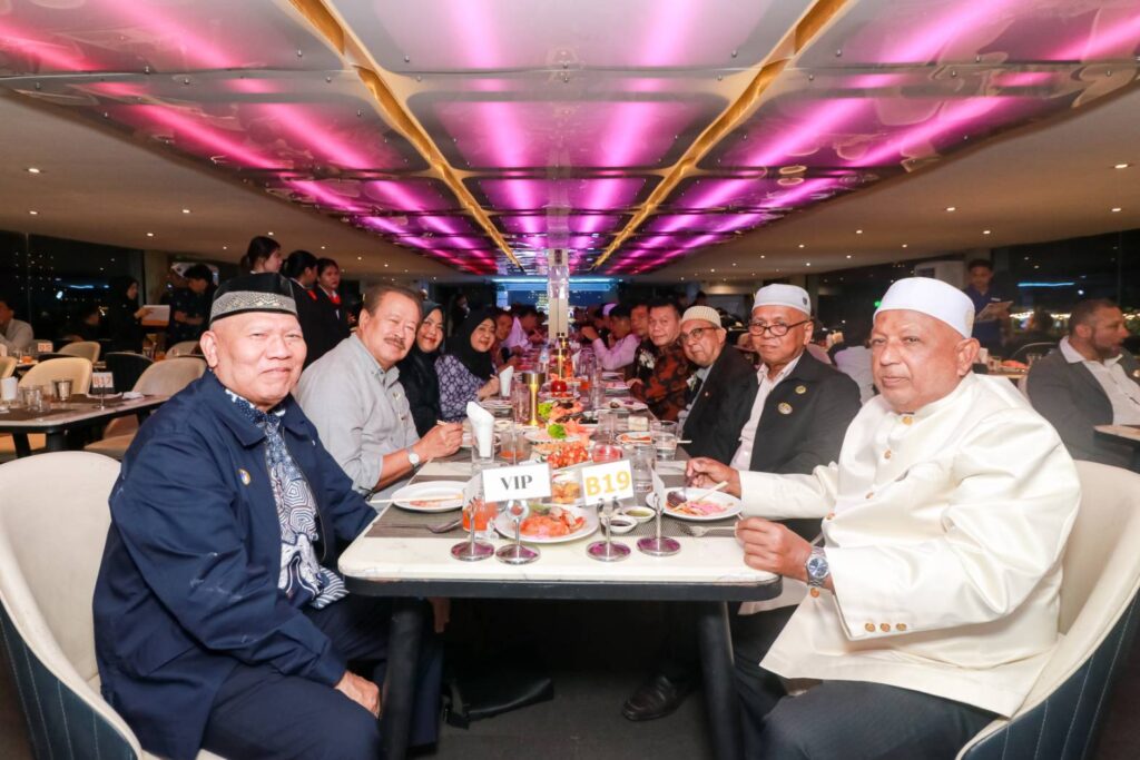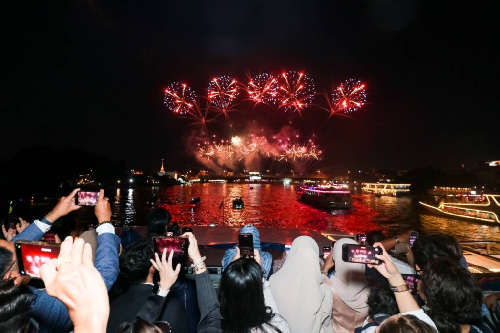 บรรยากาศการล่องเรือเป็นไปอย่างงดงาม ท่ามกลางแสงไฟประดับสองฝั่งเจ้าพระยา ผู้ร่วมงานได้อิ่มอร่อยกับ บุฟเฟ่ต์ฮาลาลนานาชาติระดับพรีเมี่ยม พร้อมชม พลุสุดอลังการเจ้าพระยา 2568 อย่างใกล้ชิด สร้างความประทับใจให้แขกผู้มีเกียรติทุกท่าน