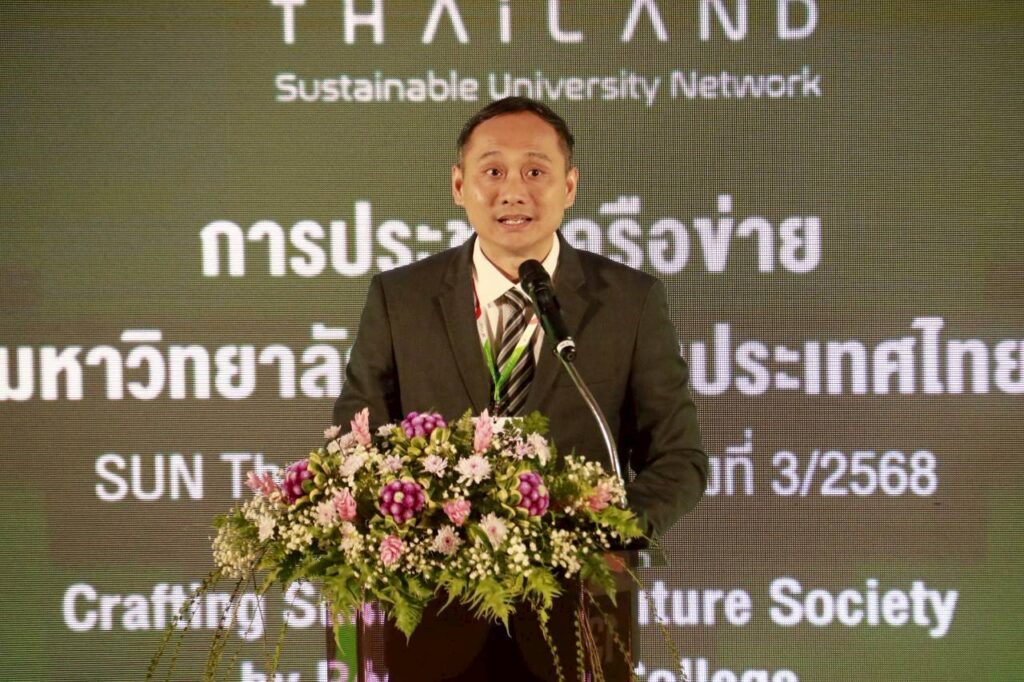 รศ.ดร.สุวิทย์ แซ่เตีย อธิการบดี มจธ. กล่าวว่า ในการขับเคลื่อนเป้าหมายการพัฒนาที่ยั่งยืน (SDGs) ของมหาวิทยาลัยในประเทศไทย ที่เป็นมหาวิทยาลัยหลักทั้งสี่กลุ่ม โดยเฉพาะที่อยู่ในเครือข่าย SUN Thailand จะต้องก้าวออกมาทำหน้าที่มากกว่าการสอนในห้องเรียน ทั้งการสร้างความตระหนัก และให้ความรู้เกี่ยวกับความยั่งยืนให้กับคนรุ่นใหม่ การลดความเหลื่อมล้ำ และการเปิดพื้นที่การเรียนรู้ตลอดชีวิตให้คนทุกช่วงวัย (Lifelong Learning) ตามพระราชบัญญัติอุดมศึกษาโดยเปิดโอกาสให้คนทุกช่วงวัยเข้าถึงการศึกษาและทักษะใหม่ๆ ได้ ซึ่งกิจกรรมเหล่านี้ยังช่วยลดค่าใช้จ่ายด้านพลังงานของสถาบันและสนับสนุนการพัฒนา Soft Power ด้านการศึกษาของประเทศอีกด้วย